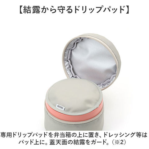 | 商品説明 | 【GEL COOLをもっと快適に】GEL COOL roundにぴったり☆「GEL COOL FIT ラウンド保冷ケース」【持ち歩き時の保冷効果が持続】ケースに入れることで、保冷効果がより長持ち◎対応のGEL COOLが気持ちよくフィット!(※1)対応商品は当店別ページにて販売中です。GEL-COOL round(商品コード:gelcoolround)、GEL COOL round with inner tray(商品コード:gelcoolri)【結露から守るドリップパッド】専用ドリップパッドを弁当箱の上に置き、ドレッシング等はパッド上に。蓋天面の結露をガード。(※2)弁当箱天面の結露が気になる際は、ドリップパッドで拭き取ってください。【持ち運びに便利な取っ手付き】サッと手に取れて、持ち歩きやすいつくり。オフィスなどで休憩室に移動する際もスムーズ。【毎日使いに役立つアイテム】GEL COOL愛用者の必需品♪飽きが来ず、どなたでも使いやすいシンプルデザイン。(※3)ドリップパッドを除き、洗濯不可です。 |