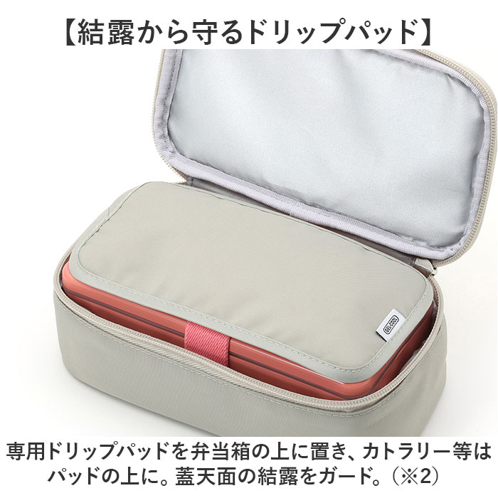 | 商品説明 | 【GEL COOLをもっと快適に】GEL COOLランチボックスに最適☆「GEL COOL FIT スクエア保冷ケース」。【持ち歩き時の保冷効果が持続】ケースに入れることで、保冷効果がより長持ち◎対応のGEL COOLが気持ちよくフィット!(※1)対応商品は当店別ページにて販売中です。GEL-COOL square L(gelcoolsl)、GEL-COOL square S(gelcools2)×2、GEL-COOL square S(gelcools2)とGEL COOL triangle(gelcoolonigiri)、GEL COOL triangle(gelcoolonigiri)×2、GEL-COOL dome M(gelcooldomem)【結露から守るドリップパッド】専用ドリップパッドを弁当箱の上に置き、カトラリー等はパッドの上に。蓋天面の結露をガード。(※2)弁当箱天面の結露が気になる際は、ドリップパッドで拭き取ってください。【持ち運びに便利な取っ手付き】サッと手に取れて、持ち歩きやすいつくり。オフィスなどで休憩室に移動する際もスムーズ。【毎日使いに役立つアイテム】GEL COOL愛用者の必需品♪飽きが来ず、どなたでも使いやすいシンプルデザイン。(※3)ドリップパッドを除き、洗濯不可です。 |