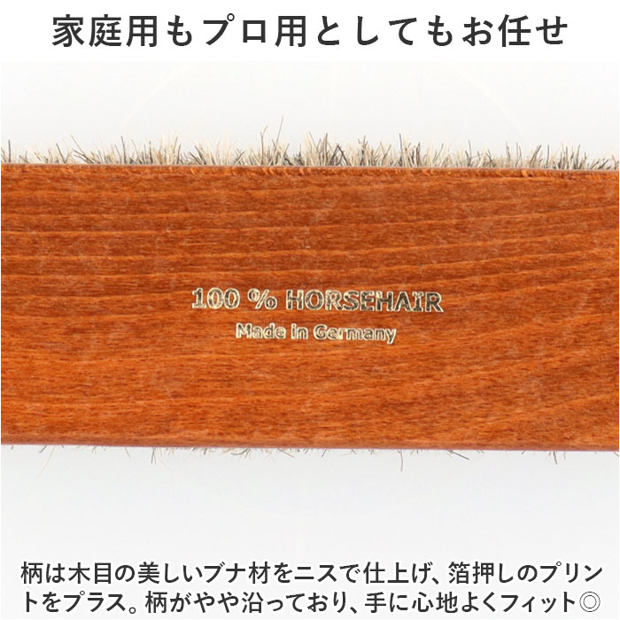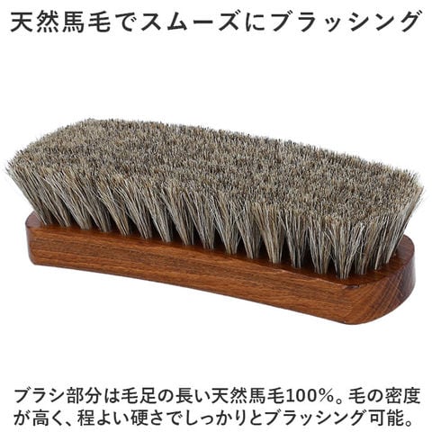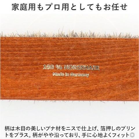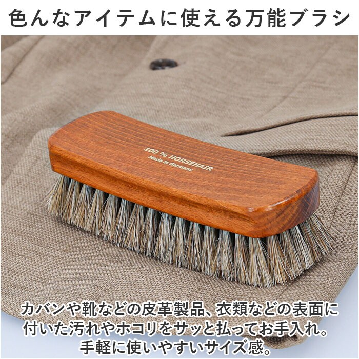 | 商品説明 | 大切な皮革製品のお手入れに。汚れやホコリ落としに便利な「ドイツブラシ デラックス スモールタイプ」が新登場。【天然馬毛でスムーズにブラッシング】ブラシ部分は毛足の長い天然馬毛100%。毛の密度が高く、程よい硬さでしっかりとブラッシング可能。【色んなアイテムに使える万能ブラシ】カバンや靴などの皮革製品、衣類などの表面に付いた汚れやホコリをサッと払ってお手入れ。手軽に使いやすいサイズ感。【家庭用もプロ用としてもお任せ】柄は木目の美しいブナ材をニスで仕上げ、箔押しのプリントをプラス。柄がやや沿っており、手に心地よくフィット◎【物を大切に使いたい方にぴったり】どなたでも使いやすいスタイリッシュなデザイン。お気に入りのアイテムを丁寧にお手入れできるブラシは、ギフトにもおすすめ! |