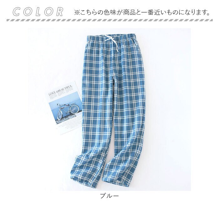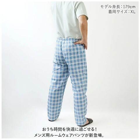 ルームウェア パジャマ ズボン メンズ 春 夏 秋 getm022【ブルー】【XL】