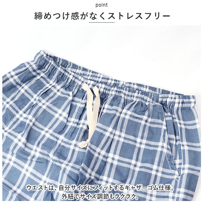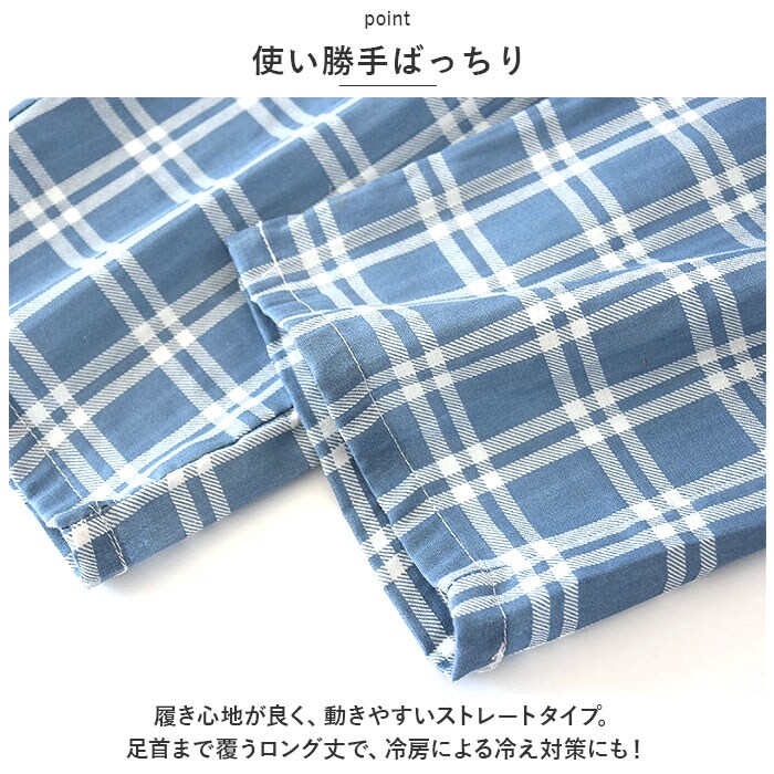 | 商品説明 | おうち時間を快適に過ごせる!メンズ用ルームウェアパンツが新登場。【ナチュラルなチェック柄】肌馴染みの良いカラーリングのチェック柄。どなたでも挑戦しやすく、お手持ちのトップスとも合わせやすいデザイン◎カラーはお好みに合わせてチョイス。【お肌に優しい生地感】サラッと軽い薄手のコットン素材。素肌に触れてもチクチク感などがなく、汗ばむ季節もムレにくい!【締めつけ感がなくストレスフリー】ウエストは、自分サイズにフィットするギャザーゴム仕様。外紐でサイズ調節もラクラク。【便利なポケット付き】左右に配置されたポケットには、スマホなどをIN。【使い勝手ばっちり】履き心地が良く、動きやすいストレートタイプ。足首まで覆うロング丈で、冷房による冷え対策にも!【持ち運びにも便利】折りたたんでもかさばりにくく、旅行や出張時にも活躍。 |