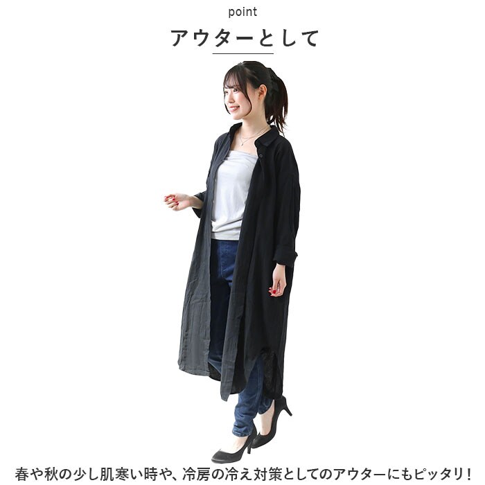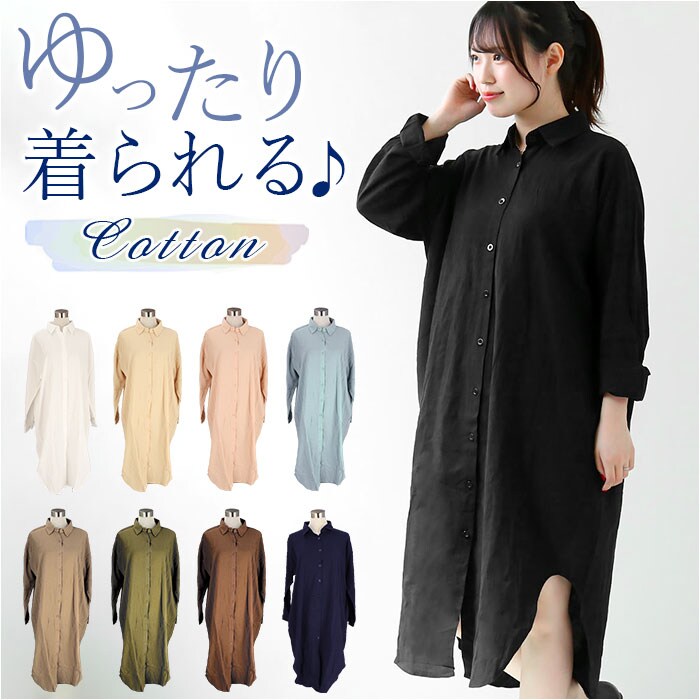 | 商品説明 | ゆったり着こなせるシャツワンピースが新発売♪【コットン素材】生地はナチュラル感があるコットン素材を採用。通気性の良さと軽さがありふんわり快適な着心地。【ゆったりシルエット】ワイドな幅にロング丈だからのラインを拾いにくく体型カバーにもおススメ♪【アウターとして】春や秋の少し肌寒い時や、冷房の冷え対策としてのアウターにもピッタリ!【サイドポケット付き】スマホやハンカチが入るポケットを両サイドに配置。【ベーシックなカラー】エイジレスで着こなせるベーシックなカラー展開♪カジュアルシーンに大活躍なアイテム。 |