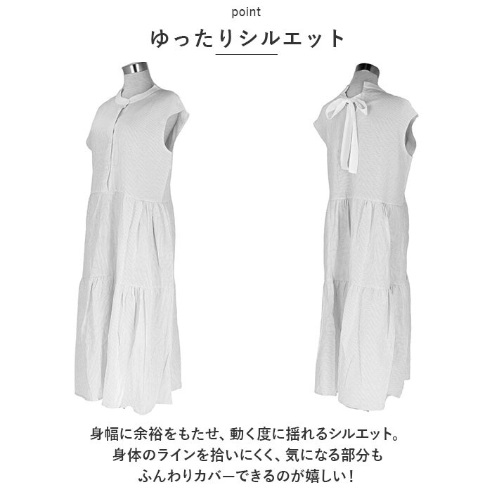 | 商品説明 | ・1枚でコーデがキマる♪大人女子にぴったりなワンピースが新登場。【リラックス感たっぷり】締め付け感がなく、サラッと軽やかな着心地◎汗ばむ季節もムレにくく、ストレスフリー。【ゆったりシルエット】身幅に余裕をもたせ、動く度に揺れるシルエット。身体のラインを拾いにくく、気になる部分もふんわりカバーできるのが嬉しい!【控えめな肌見せが叶う♪】袖口は半袖よりやや短めのフレンチスリーブタイプ。肩先をふんわり覆ってくれて、年代問わず着用しやすいデザイン。【後ろ姿も抜かりなし】背中がチラッと見えるバックリボンで、抜け感をプラス♪後ろ姿もキュート。【持ち運びにもおすすめ】折りたたんでもシワになりにくく、旅行やリゾートシーンでも活躍!【選べるカラー】シンプルな無地カラーや、ナチュラルなストライプスデザインをラインナップ。それぞれ雰囲気が異なるので、なりたいイメージに合わせてチョイスして♪ |