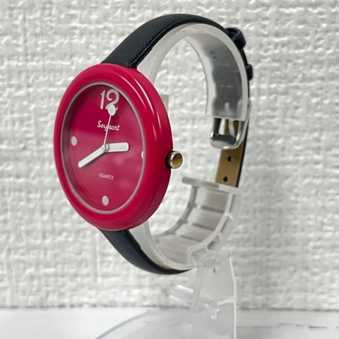 | 商品説明 | 4色のカラーバリエーションがあるシンプルな時計。文字盤はシンプルでありながら針はホワイトでしっかりと時間を見ることが可能。黒いベルトがよりポップなカラーを可愛く見せている。 |