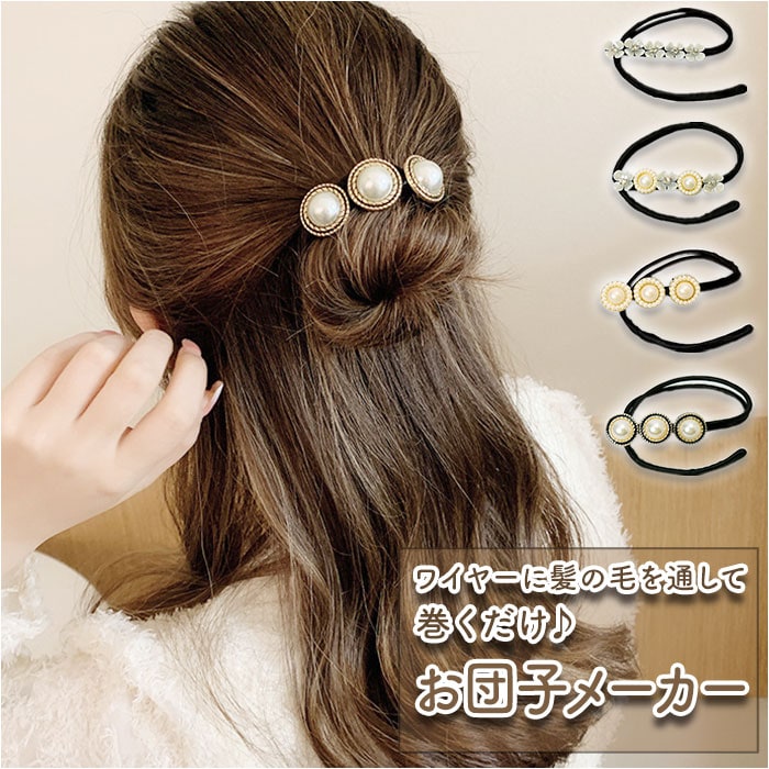 お団子メーカー ヘアアクセサリー ghairclip4906【パール×ライン】