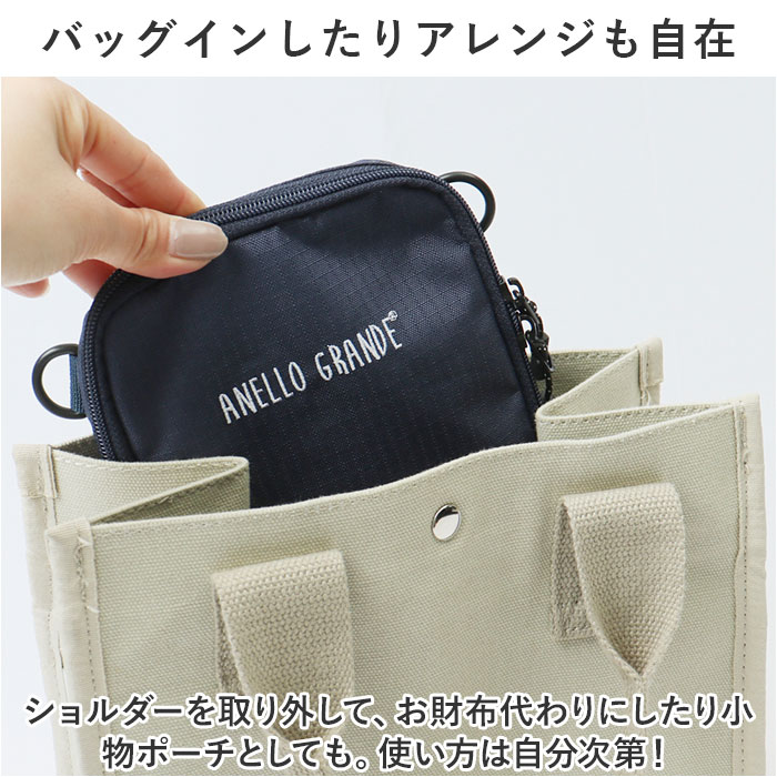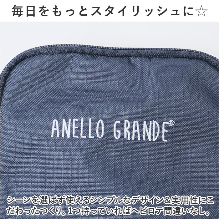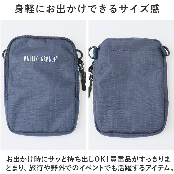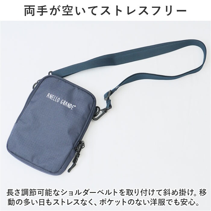 | 商品説明 | 必要最低限の小物をIN!anelloGRANDEのタープシリーズから、ミニマル派にうれしい「縦型ミニショルダー」が新登場。【身軽にお出かけできるサイズ感】お出かけ時にサッと持ち出しOK!貴重品がすっきりまとまり、旅行や野外でのイベントでも活躍するアイテム。【アウトドアテイストな仕上がり】両面に水を弾くはっ水ポリエステル素材を使用し、カジュアル感たっぷりなタープシリーズ。軽量ながらガシガシ使える丈夫な素材◎【ガバっと開いて出し入れスムーズ】ダブルファスナーで左右どちらからも、大きくオープン。中身を確認しやすく、サッと取り出しOK。【スマホや現金、カードもひとまとめ】内側は間仕切りポケットで分かれた2スペース仕様。スマホが縦向きにすっぽり収まり、少しの現金やカードも収納できてキャッシュレス派におすすめ。【すぐに取り出せる外ポケット】背面にもポケットを配置しており、コンパクトながら使い勝手ばっちり。【両手が空いてストレスフリー】長さ調節可能なショルダーベルトを取り付けて斜め掛け。移動の多い日もストレスなく、ポケットのない洋服でも安心。【バッグインしたりアレンジも自在】ショルダーを取り外して、お財布代わりにしたり小物ポーチとしても。使い方は自分次第!【毎日をもっとスタイリッシュに☆】シーンを選ばず使えるシンプルなデザイン&実用性にこだわったつくり。1つ持っていればヘビロテ間違いなし。【ポケット仕様】内側:ファスナーポケット×1、オープンポケット×1、カードポケット×3背面:オープンポケット×1 |