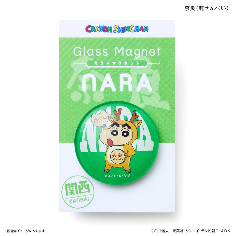 クレヨンしんちゃん ガラスマグネット 関西【奈良(鹿せんべい)】