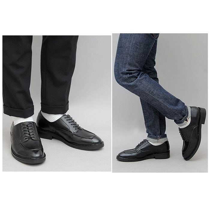 glabella Split Leather U-tip Shoes【BLACK-B】【L(27-27.5cm)】