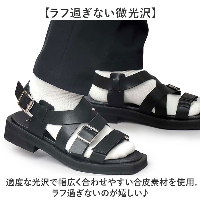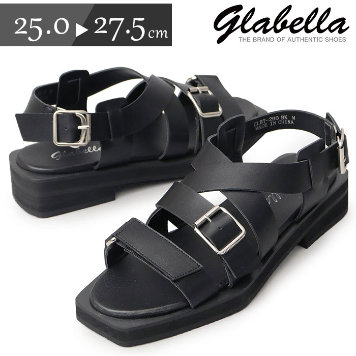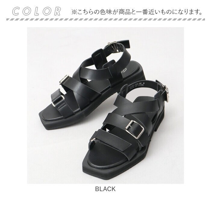 glabella SQOUARE TOE STRAP SANDALS【BLACK】【Lサイズ(27.0-27.5cm)】