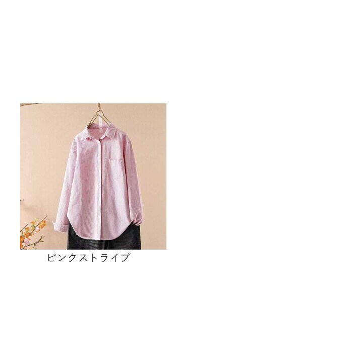シャツ トップス 長袖 おしゃれ カジュアル glhcsh898【ピンクストライプ】【M】