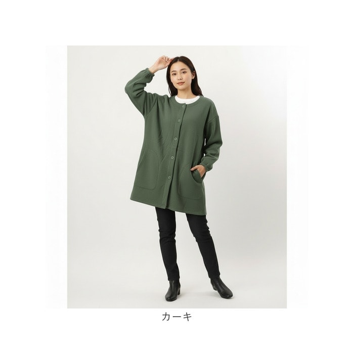 | 商品説明 | 【裏起毛であったかかっぽう着】カジュアルデザインで普段着感覚、裏起毛であったかいかっぽう着【前開きで着脱楽々】大きめボタンで大きく開くから、サッと羽織れて脱ぎやすく、忙しい朝もスムーズな使いやすさ◎【裏起毛であたたか】裏起毛素材でふんわりあたたかく、冬場の家事や保育の仕事でも冷えから守ってくれる快適さ!【両サイドにポケット】左右にポケットが付いて、スマホやティッシュなどをサッと入れられる実用的な便利さ〇【袖口ゴムで安心】袖口がゴム仕様で手首にフィットし、作業中も袖がまくれ上がらず動きやすい機能性♪【厚手なのに軽い】厚手生地でしっかり防寒できるのに軽量だから、一日中着ていても疲れにくい快適な着心地。 |