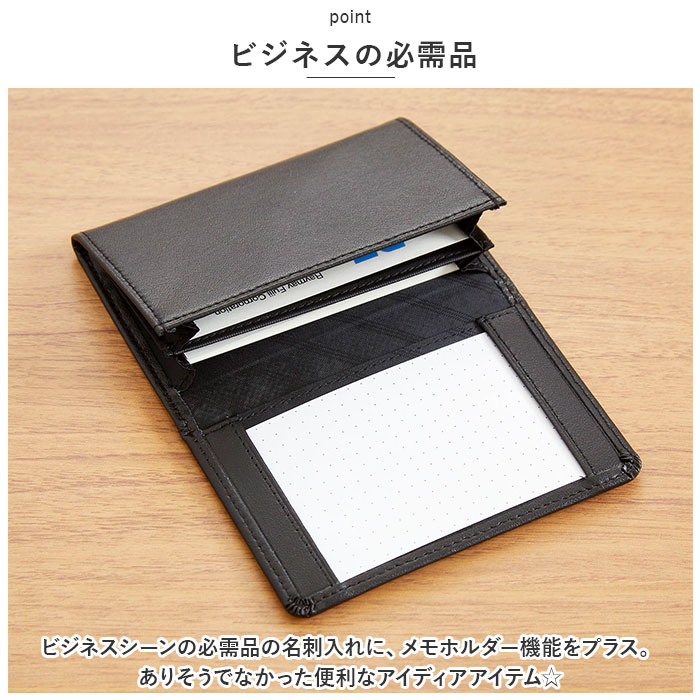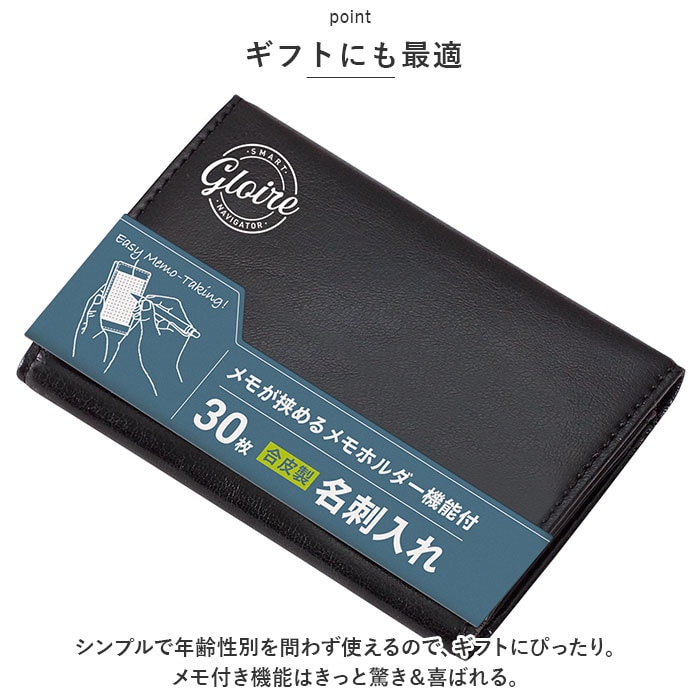 グロワール メモホルダー付名刺入れ 合皮製【ブラック】