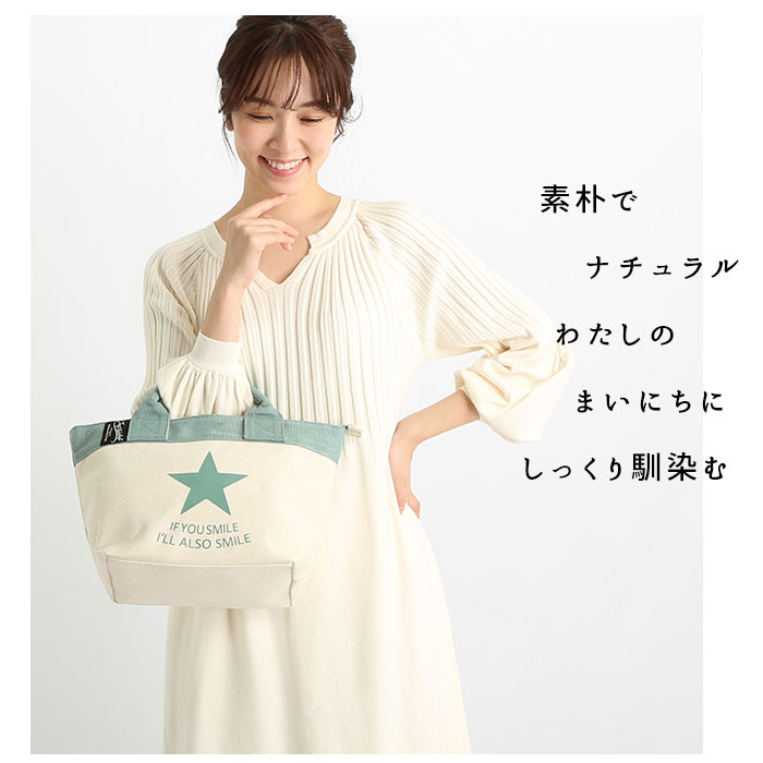 | 商品説明 | スターやドットなどポップな柄がひときわ目を惹く!JOUJOULIERのナチュラルなキャンバスミニトートが新登場。コンパクトながらもたっぷりのマチで、スマホや長財布など普段持ち歩きたい小物類がすっぽり収まるサイズ感。B5サイズの本や10インチ前後のタブレット、500mlペットボトルも縦置きで収納できて、大満足の収納力。開口部がテープ生地で縁取られたしっかりとした造りで、生地がくったりしないのが嬉しい!天ファスナータイプだから、小物が飛び出す心配がなく安心。トート内側には、ファスナーポケット×1とオープンポケット×2を装備。散らかりやすい小物類もすっきり。カフェやショッピングなどちょっとしたお出かけにはもちろん、ランチトートとしても大活躍。 |