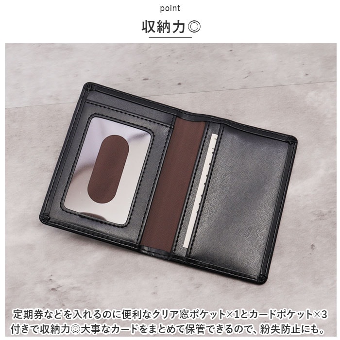 | 商品説明 | プライバシーを保護してくれる「グロワール(GLOIRE) 2つ折りパスケース」が発売。【収納力◎】定期券などを入れるのに便利なクリア窓ポケット×1とカードポケット×3付きで収納力◎大事なカードをまとめて保管できるので、紛失防止にも。【仕分け収納】免許証や保険証・診察券、交通系ICカードなど、種類ごとに収納すると便利。【2つ折り】2つ折りタイプのパスケースなので中が見えず、プライバシーを保護してくれる。【お手入れ簡単】合皮なので、軽くて汚れにくく、お手入れもカンタン。【Dカン付き】別売りのリール付バッグストラップがつけられるDカン付き。【シンプルデザイン】ユニセックスで使えるシンプルなデザイン&ベーシックなカラー展開。幅広い年代で使えるので、ギフトにもおすすめ。 |
