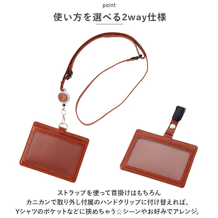 | 商品説明 | オフィスでの必需品!どなたでも使いやすい「グロワール IDホルダー」が登場。【シンプルなデザイン】手触り柔らかなPU素材を使用し、マットな無地カラーで仕上げたアイテム。落ち着きのある印象で、ビジネススタイルにマッチ◎【社員証もカードも一緒に】表面のクリア窓ポケットには社員証を。裏面ポケットには、名刺やカード類を収納可能。(※表裏収納可能カードサイズ:91mm×63mm)【スマートにタッチ&ゴー♪】ストラップには、最大約30cmまでぐ~んと伸びるリール付き。オフィスの入口ゲートでも、手間取らずスムーズにタッチOK!【使い方を選べる2way仕様】ストラップを使って首掛けはもちろん!カニカンで取り外し付属のハンドクリップに付け替えれば、Yシャツのポケットなどに挟めちゃう☆シーンやお好みでアレンジ。【使い勝手ばっちり】ストラップは自由に長さ調節可能。強い力が加わると、連結したパーツが外れる安心設計!【ちょっとしたギフトにも】年代問わず携帯しやすいデザイン。お仕事を頑張っている家族への贈り物にもおすすめ。 |