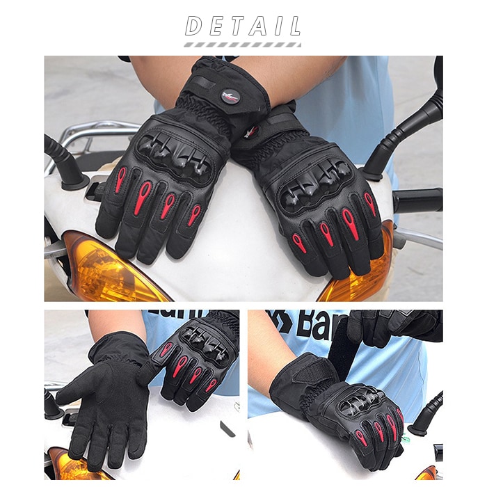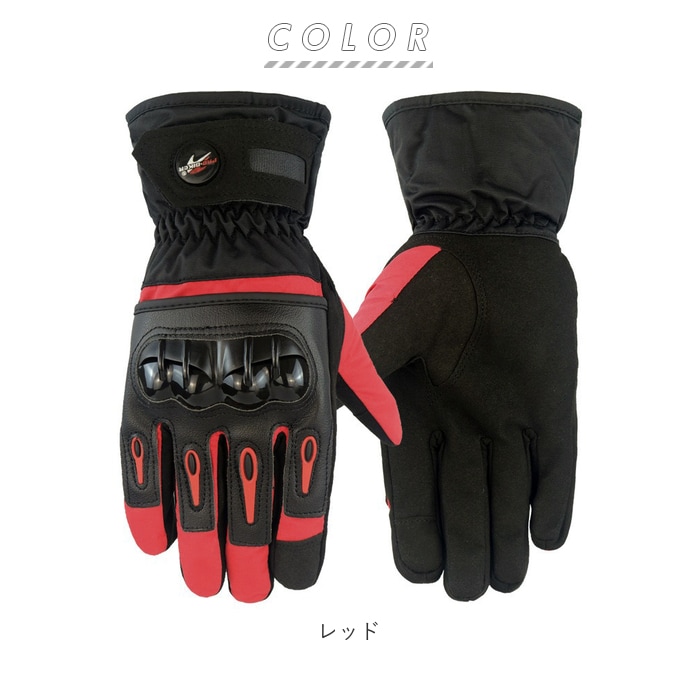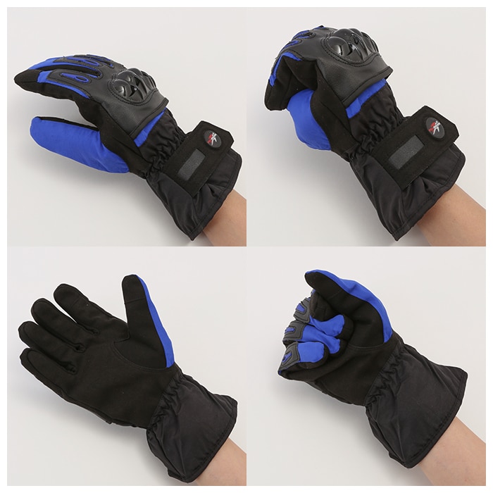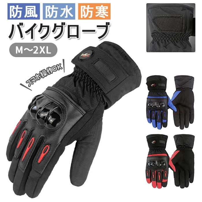 | 商品説明 | バイクや自転車での走行時に最適なバイクグローブが新登場。手袋の裏地には保温性の高いフリース素材を手首まで全面に使用。袖口部分はしっかりとした面ファスナー付きで、風の侵入を防ぎ体温を逃がさない。手の甲部分にはもしもの怪我からガードしてくれるプロテクター付き。親指と人差し指の指先にはタッチパネルの操作が可能な素材を使用。(スマホフィルムの種類によって操作できない事がございます)手袋の表面は防水加工済み。アウトドアシーンでも使える防寒アイテム。 |