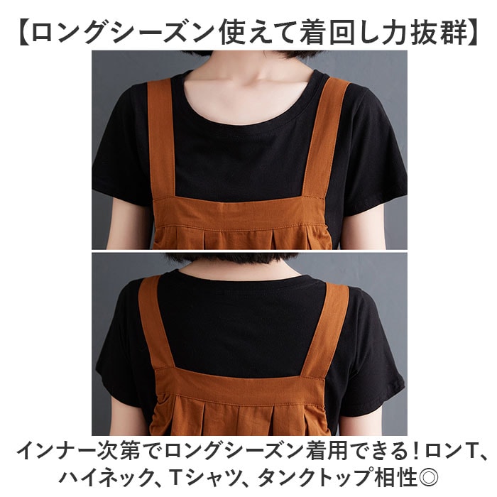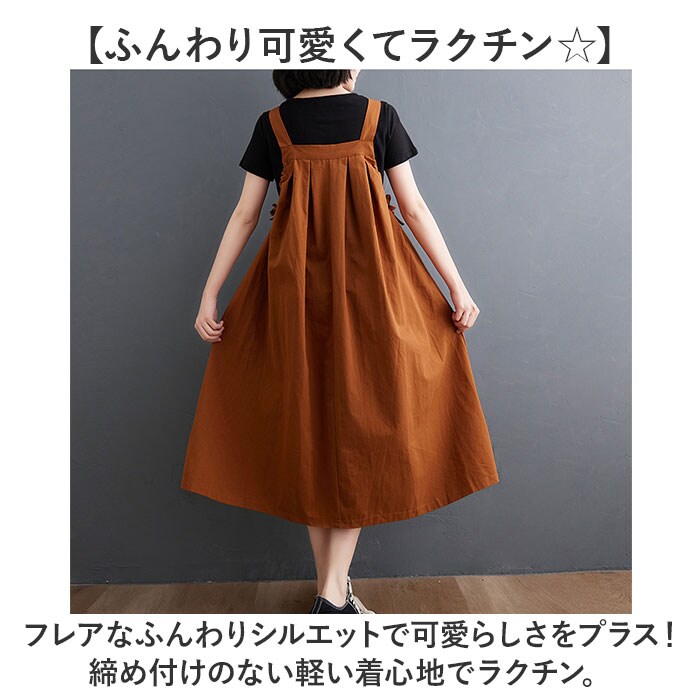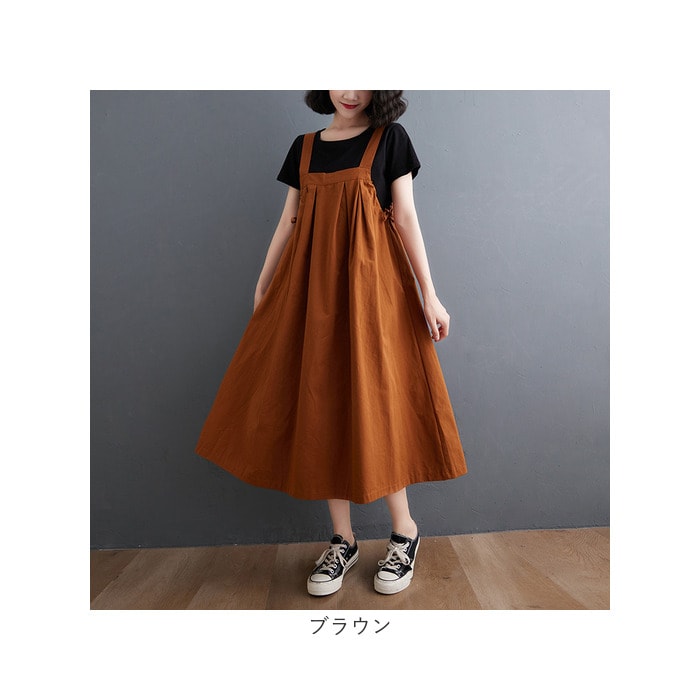 ジャンパースカート ロング 体形カバー おしゃれ gop6029【ブラウン】