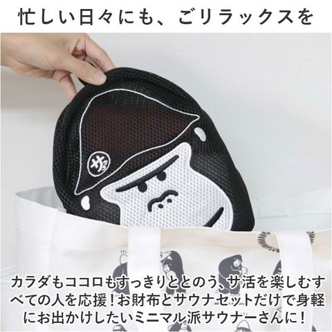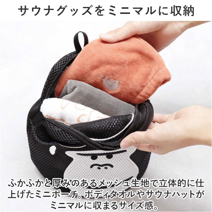 | 商品説明 | サウナの世界を日常に♪サウナから持ち帰った濡れ物を、そのまま洗濯機にポイッとできちゃう「ごリラックス まもるさんの洗えるポーチ」が新登場。【ごリラックスとは】ごリラックスは、サウナをテーマに、無口でシャイなゴリラのまもるさんが、いつもがんばっているあなたの心と身体を整えてくれる、ととのい系ブランド。【サウナグッズをミニマルに収納】まもるさんのお顔をモチーフに、ふかふかと厚みのあるメッシュ生地で立体的に仕上げたミニポーチ。ボディタオルやサウナハットがミニマルに収まるサイズ感。【持ち帰ったら、まるごとお洗濯】通気性が高くてすぐに乾くメッシュ素材なので、持ち帰ったらポーチごとザブザブお洗濯が可能。洗濯ネットに移し替える手間を省いて、毎日の家事を賢く時短!【スムーズ開くファスナータイプ】ポーチの開口部は、開け閉めがスムーズにできるファスナータイプ。持ち運び時に小物がこぼれず、洗濯機の中でもバラバラしないのが嬉しいポイント。【カチカチ音がしない金具カバー】洗濯機の中でファスナーのカチカチ音がしない、ファスナー金具カバー付き。ミニサイズでも細部までこだわったつくりが自慢。【便利なループ付き】まもるさんの頭の天辺に付いたループで、浴場内のフックに引っ掛けておく時や、お洗濯後に乾燥させるときにも便利。【ごリラックスオリジナルデザイン】サウナハットをかぶってドヤ顔で微笑む、まもるさんのお顔のドアップデザイン。マルで囲んだ「サuna」ロゴがワンポイント。【忙しい日々にも、ごリラックスを】カラダもココロもすっきりととのう、サ活を楽しむすべての人を応援!お財布とサウナセットだけで身軽にお出かけしたいミニマル派サウナーさんにぴったり! |