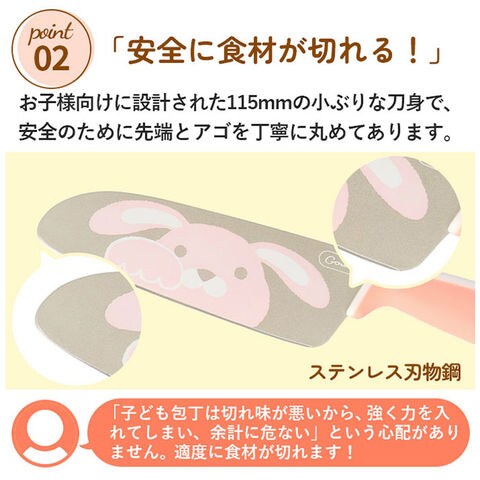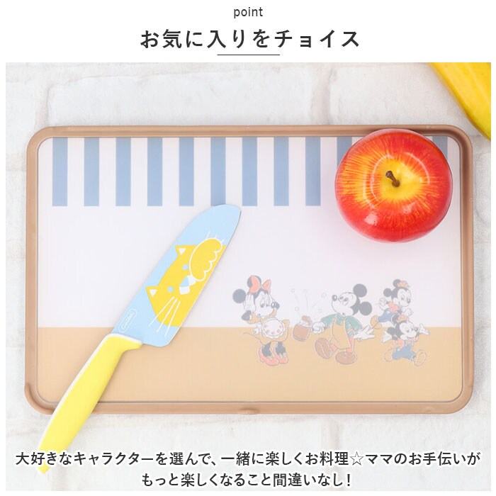 | 商品説明 | 可愛いアイテムを使って、ママと楽しくクッキング♪包丁&抗菌両面ガード付きまな板のセットが登場。【初めての調理にぴったり】お子さまが使いやすいサイズ感で、安全に使える2点セット。動物デザインの包丁とキャラクターデザインのまな板で、お手伝いがもっと楽しくなること間違いなし!《包丁》【グーの手で動物とタッチ】刃の部分にプリントされた動物のように、グーの手を真似っ子♪食材をおさえる時の安全な手の添え方を、自然にレクチャー!【安全で使い勝手ばっちり】包丁の先と角を丁寧に丸めたフォルムで安心・安全◎小さな手でも握りやすい、丸みのあるグリップハンドルもポイント。《まな板》【L字ガードでサポート】食材をこぼしにくく、鍋やボウル、食器などへスムーズに移せる「L字ガード」を装備。【完全リバーシブルタイプ】両面にデザインをプリントし、ガードも取り付けた表裏同様に使えるつくり。気分に合わせて使う面を選んだり、食材によって使い分けてもOK。【収納が省スペース】自立するので、場所を取らずスタンド収納できちゃう!【抗菌仕様で衛生的】全体に抗菌効果のある銀イオンを練りこんだ素材を使用。いつも清潔をキープ。(※抗菌加工を施しておりますが、すべての細菌の増殖を抑制するものではありません。)【お手入れラクラク】熱湯消毒&食洗機の使用が可能。お手入れしやすく、忙しいママも笑顔に☆【お気に入りをチョイス】お気に入りのデザインを選んで、一緒に楽しくお料理☆お子さまへのギフトにもおすすめ。 |