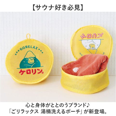 商品説明【サウナ好き必見】心と身体がととのうブランド♪「ごリラックス 湯桶洗えるポーチ」が新登場。【湯桶風デザイン】本物の湯桶のような見た目がポイント。サウナや銭湯で使ったタオル等をスマートに収納。【そのまま洗える】おうちに帰ってきたらそのまま洗濯機へ!丸ごと洗えてとっても便利◎【使い勝手抜群】フックに掛けられるループ付き。どこでもひっかけられて場所を取らない。【サ活気分が上がる】ゴリラのまもるさんがキュート♪デザイン性と実用性を兼ね備えたアイテム。