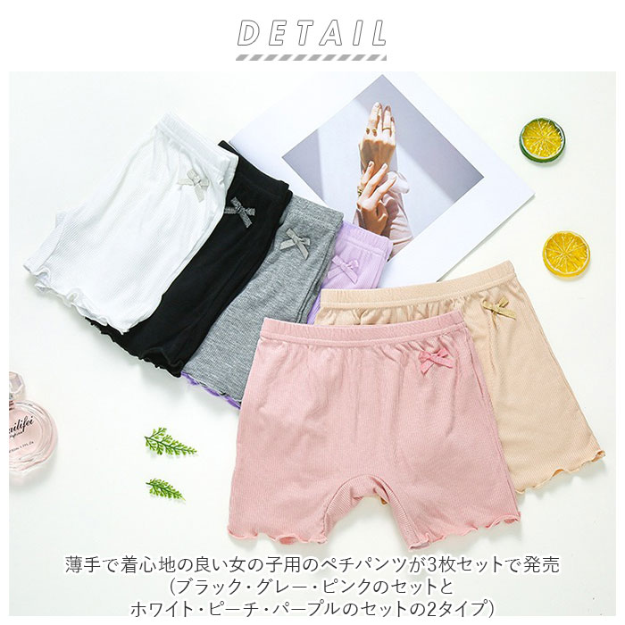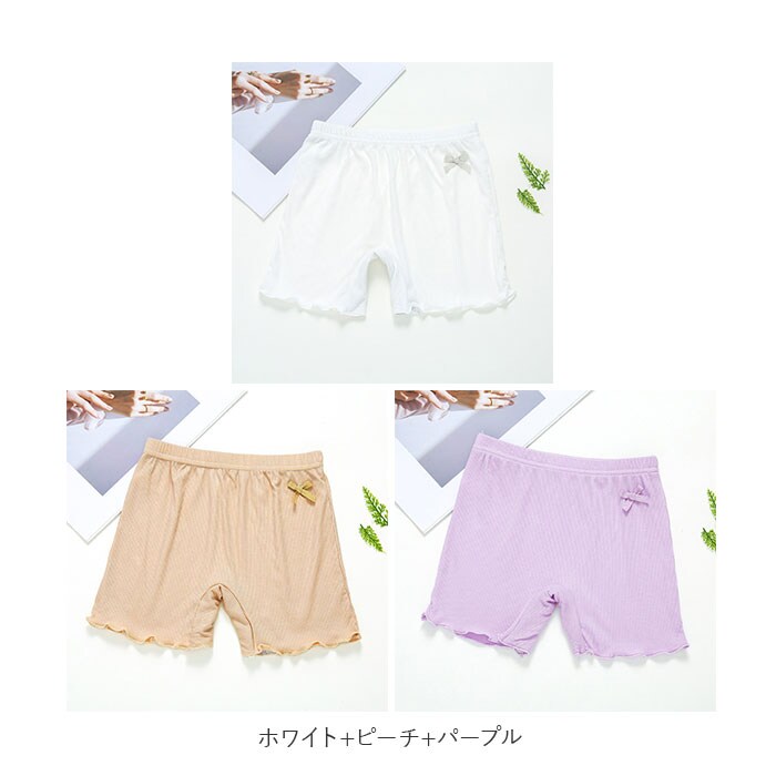 ペチパンツ キッズ 3枚セット gpan40721set3【ホワイト+ピーチ+パープル】【110cm】