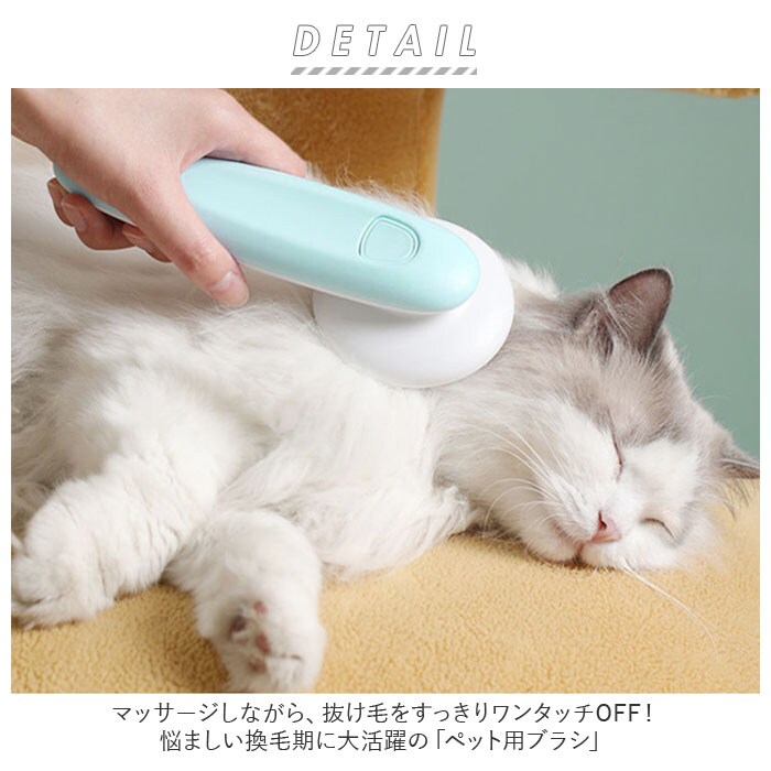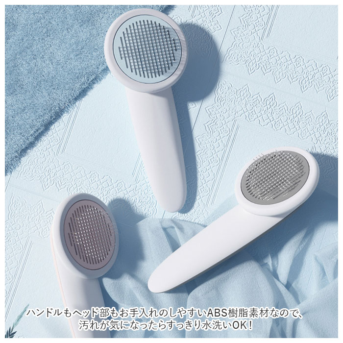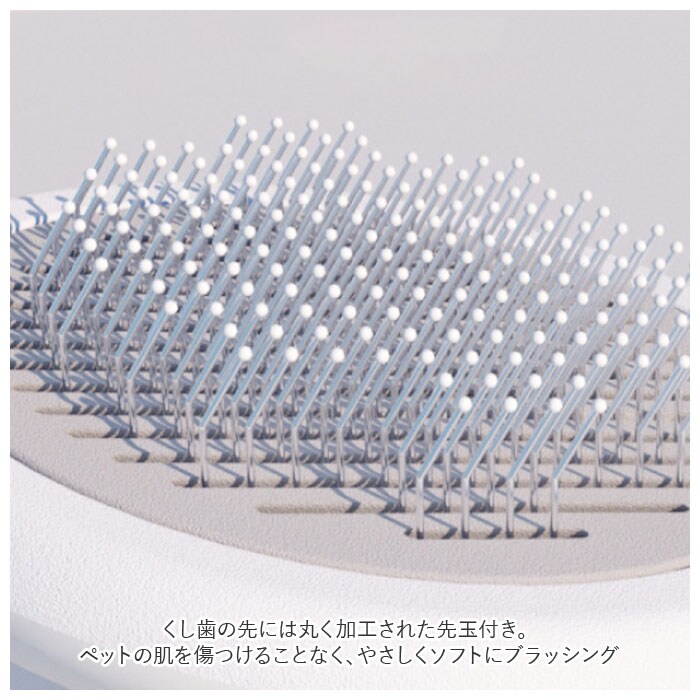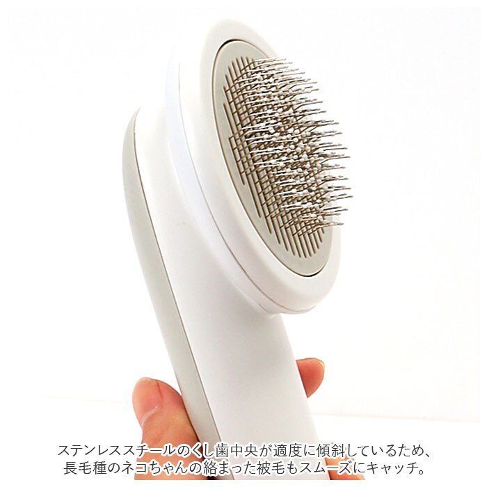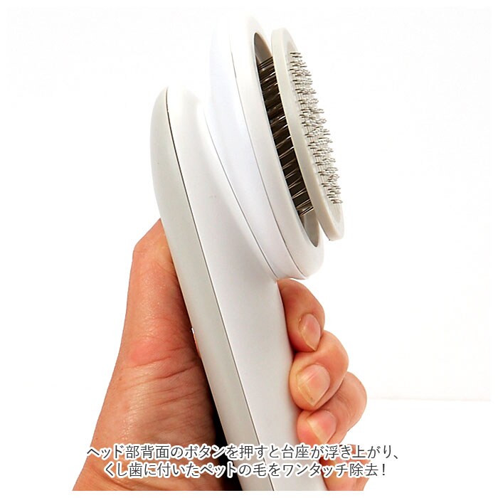 | 商品説明 | マッサージしながら、抜け毛をすっきりワンタッチOFF!悩ましい換毛期に大活躍の「ペット用ブラシ」ヘッド部背面のボタンを押すと台座が浮き上がり、くし歯に付いたペットの毛をワンタッチ除去!あとは毛玉をポンッとくずかごに捨てるだけ!ステンレススチールのくし歯中央が適度に傾斜しているため、長毛種のネコちゃんの絡まった被毛もスムーズにキャッチ。くし歯の先には丸く加工された先玉付き。ペットの肌を傷つけることなく、やさしくソフトにブラッシング。抜け毛を取り除くだけではなく、ワンちゃんやネコちゃんの毛づやをよくするためのマッサージ用にも最適♪日頃のブラッシングケアでフロアに落ちる抜け毛が軽減し、お掃除がとっても楽ちん。ペットも飼い主さんも笑顔に♪ハンドルもヘッド部もお手入れのしやすいABS樹脂素材なので、汚れが気になったらすっきり水洗いOK!毎日のこまめなブラッシングで、大切なペットとスキンシップを図りたい飼い主さんにオススメ。 |
