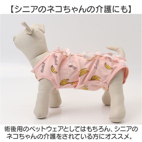 | 商品説明 | 【手術後のペットの身体をケア】お腹周りまですっぽりカバーして、手術後のペットの身体に優しい「キャット用術後ウェア」【キズ舐め、引っかき防止に効果的】避妊手術の後や皮膚疾患で治療中のペットが、患部を舐めたり噛んでしまうことを防ぐ術後服。【柔らかく、優しい着心地】柔らかく通気性に優れたコットン100%生地を使用。適度な伸縮性で動きやすく、優しい着心地。【体調に合わせて選べる2タイプ】背中でパチンッと留めやすいボタンタイプと身体に負担の少ないストリングタイプの2タイプ。【手術後にサッとラクラク装着】広げたウェアの袖に、両前脚・後ろ脚の順に通したら、背中のボタン・リボンを留めるだけ!【おトイレの時も安心】お尻周りが丸く開いたデザインなので、女の子はウェアを着たままでおトイレOK!※男の子は、お腹部分のステッチ内側を丸くカットしてあげることでおトイレにしっかり対応!【退院後・治療中でもリラックス】エリザベスカラーのように動きが制限されないので、動物病院からの退院後でもリラックス!【シニアのネコちゃんの介護にも】術後用のペットウェアとしてはもちろん、シニアのネコちゃんの介護をされている方にオススメ。【ぴったりサイズが見つかる!】S~XLサイズまでの4サイズ展開で、ネコちゃんの身体に合わせてピッタリサイズがチョイス可能!【ペットの表情が映えるカラーリング】治療中のペットを優しく見守る、パステルカラーにバナナの模様を散りばめたユニークなデザイン♪ |