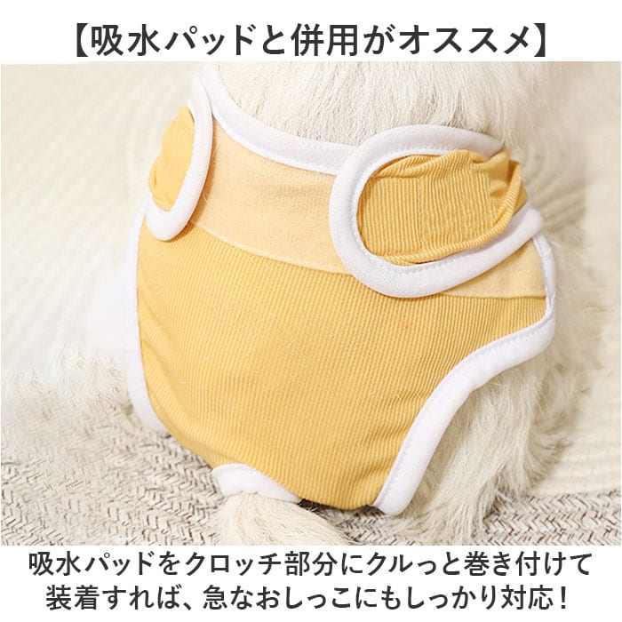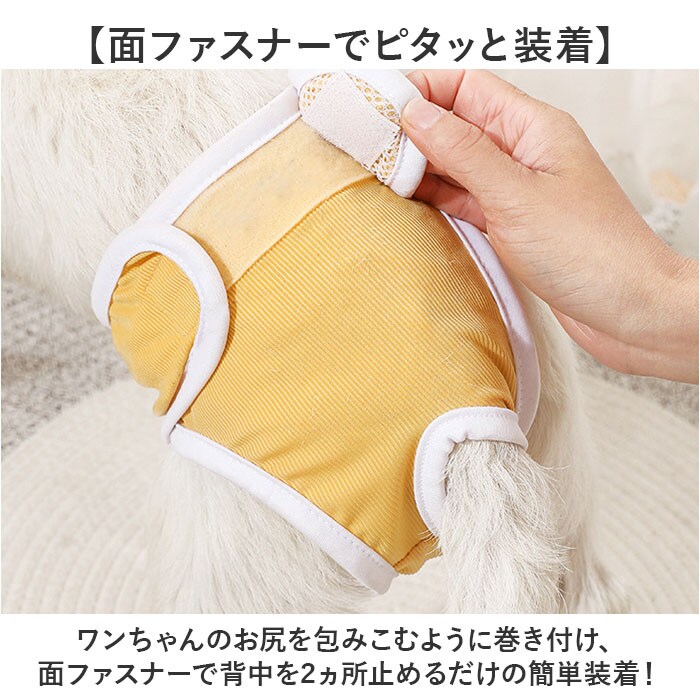 | 商品説明 | 【愛犬とのお出掛けや介護に大活躍】華やかなニュアンスカラーの彩りで、お洋服感覚で着せてあげられる「ドッグ用マナーパンツ」。【オムツに見えないお洒落なデザイン】明るくカラフルな生地をホワイトのパイピングで縁取った、パッと見オムツに見えないデザイン。【クロッチ部分はサラサラメッシュ】クロッチやお腹部分は肌触りの優しいメッシュ生地仕上げ。ムレが気になる季節もサラッと快適。【吸水パッドと併用がオススメ】吸水パッドをクロッチ部分にクルっと巻き付けて装着すれば、急なおしっこにもしっかり対応!【面ファスナーでピタッと装着】ワンちゃんのお尻を包みこむように巻き付け、面ファスナーで背中を2ヵ所止めるだけの簡単装着!【着用時のストレスフリー】尻尾が出せるようにお尻部分が丸く開いたデザインなので、窮屈感がなく着用時のストレスフリー♪【ご家庭で手軽にお洗濯♪】生地は肌触りの滑らかなポリエステル100%素材。ご家庭で手洗いできるのも嬉しいポイント。【お漏らし対策やシニアのペットに】旅行先でのそそうや気になってしまう飼い主さん、シニアの愛犬の介護をされている方に最適。【ぴったりサイズが見つかる!】S~XXLサイズまでの5サイズ展開で、愛犬の身体に合わせてピッタリサイズがチョイス可能!※超小型犬~中型犬に最適なサイズ感です。【お散歩が楽しくなるカラーリング】お散歩やお出掛け用のペットウェアに合わせてコーディネートができる彩り豊かなラインナップ。 |