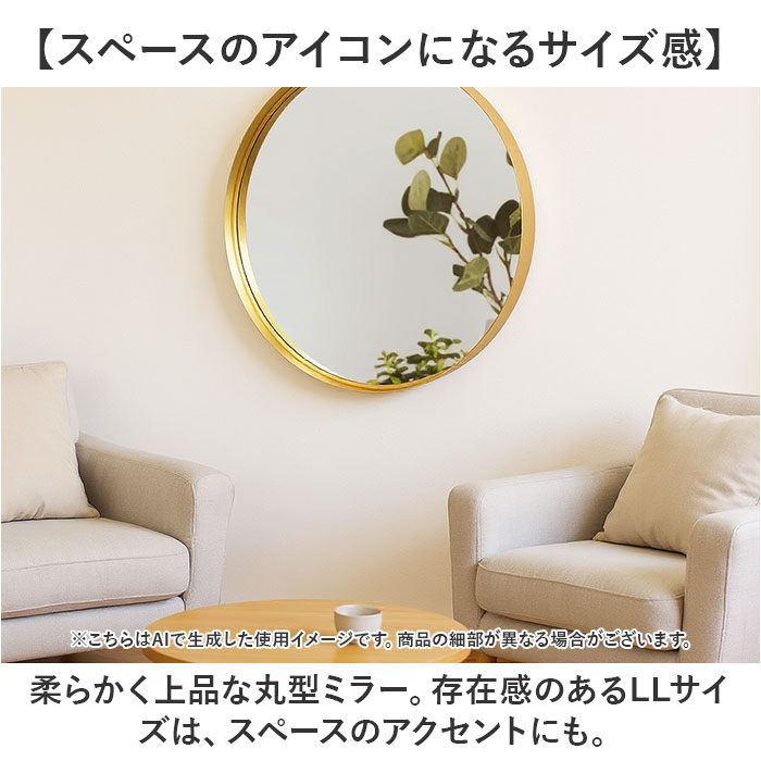 商品説明【光と奥行きを与えるミラー】空間を明るく広く♪身だしなみチェックなどにも!Grocia メタルラウンドミラー LL。【スッと溶け込む洗練された仕上がり】柔らかな光沢をもつ、アルミ製の奥行があるフレーム。主張しすぎず程よく個性的でエレガント。【光を反射し、空間に温かみをプラス】フレームが光を反射し、お部屋全体を明るく演出♪自然光や人工光を受けて輝く!【お肌の見え方も明るくキレイに】ミラーは反射率の高い、日本製の銀引鏡板。明るく、歪みのない見た目に近い反射を映し出す♪【安心して使える飛散防止加工済み】万が一ミラーが破損した場合も、破片が飛び散りにくい仕様。事故やケガのリスクを軽減◎【壁に簡単に設置できて便利】背面のフックを使って、サクッと壁掛け。吊り下げ用の紐も1本付属。【スペースのアイコンになるサイズ感】柔らかく上品な丸型ミラー。存在感のあるLLサイズは、スペースのアクセントにも。