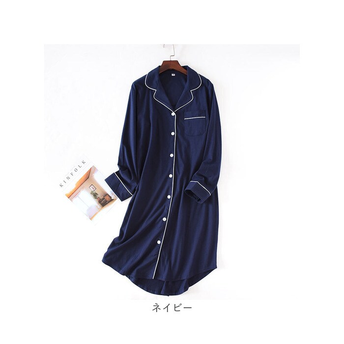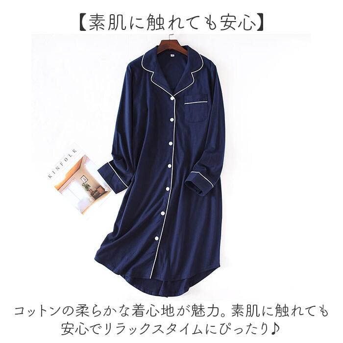 ルームウェア ワンピース コットン 長袖 オールシーズン grw6032【ネイビー】【M】