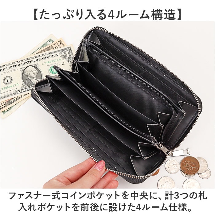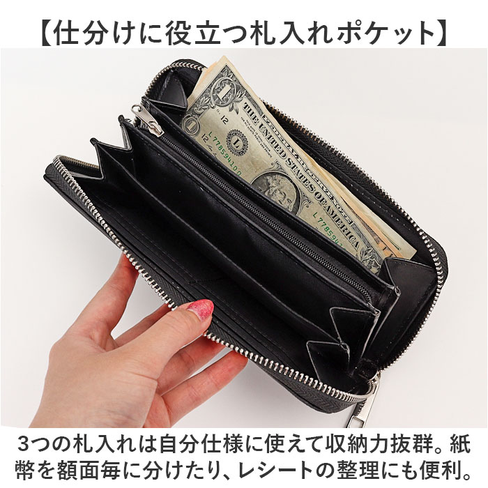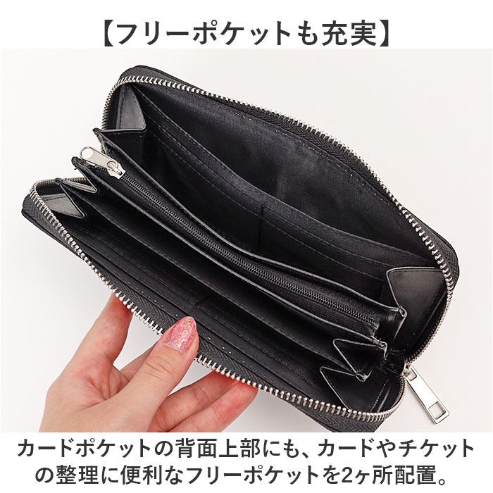 | 注意点 | 【ポケット仕様】[ウォレット内側]札入れポケット×3、ファスナー式コインポケット×1[札入れポケット内部]カードポケット×8、フリーポケット×2[コインポケット内側]仕切りポケット×2[ウォレット外側]背面・・・フリーポケット×1年月の経過や空気中の湿度や紫外線、熱や汚れ等により、劣化などが生じる場合があります。長時間日光にあたったり、摩擦、水漏れなどによる色落ちや色移りすることがあります。お取り扱いの際は、商品やパッケージなどに記載されている品質表示、アテンションタグ、ご使用上の注意事項などを必ずご確認下さい。本来の目的以外にはご使用にならないで下さい。カメラやモニターの性質により、画像と実物の色の違いがある場合がございますのでご理解願います。 |
