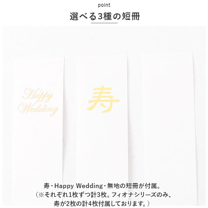 | 商品説明 | 大切な人に思いを込めて♪大人の女性にぴったりな御祝儀袋が新登場。【上品な印象を演出】ゴールド文字入りののし紙に、キラッと目を惹く水引。程よい存在感で、使い勝手ばっちり。金額目安は1万円~。【選べる3種の短冊】寿・Happy Wedding・無地の短冊が付属。お好みやシーンに合わせて選べるのが嬉しい!(※それぞれ1枚ずつ計3枚。フィオナシリーズのみ、寿が2枚の計4枚付属しております。)【中袋&使い方の説明付き】中袋を別途用意する必要なし!名前や金額などの書き方説明付きだから、とっても安心。【和洋ミックスのデザイン】和洋それぞれのテイストを絶妙に組み合わせ、おしゃれ度アップ。選ぶ時間も楽しみに♪ |