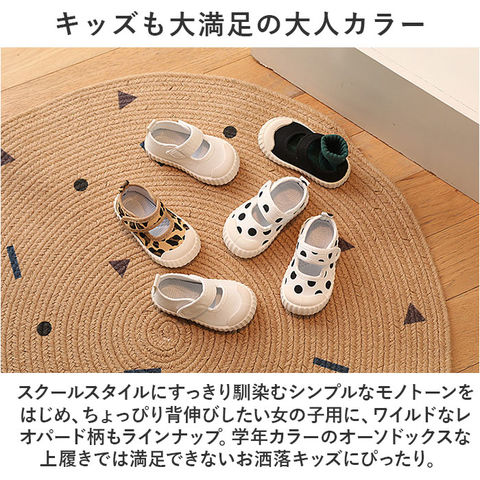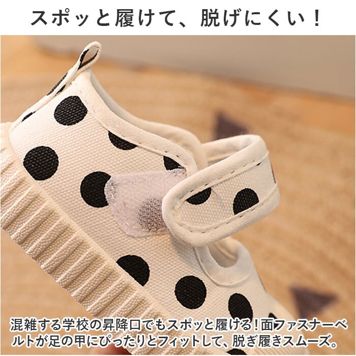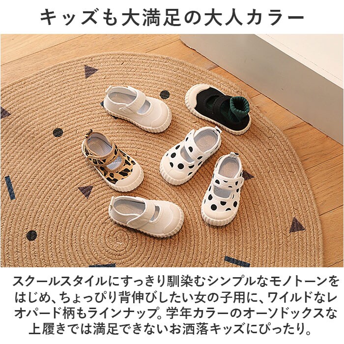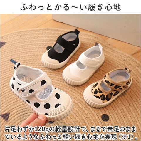 | 商品説明 | 個性的な大人柄とシンプルなモノトーンから自分色をチョイス♪「キッズ用スクールシューズ(上履き)」が新登場。【キッズの足に優しいつくり】クッション性のあるスポンジ状のカップインソールと、弾力性に優れた合成ゴム素材のフットベッドが足裏にかかる衝撃や負担を優しく軽減。【ふわっとかる~い履き心地】片足わずか120gの軽量設計で、まるで素足のままでいるようなふわっと軽い履き心地を実現(※1)。【丸いカタチがつま先をガード】アウトソール先端は、つま先部分を包み込むように丸いフォルムに仕上げ、うっかりつま先をぶつけてしまっても安心なつくり。【スポッと履けて、脱げにくい!】混雑する学校の昇降口でもスポッと履ける!面ファスナーベルトが足の甲にぴったりとフィットして、脱ぎ履きスムーズ。【滑りにくいアウトソール】波状の凹凸を刻んだアウトソールが、フラットなフロアーや階段でもしっかりとグリップするから、活発なキッズでも安心!【抜群の屈曲性で動きやすい】屈曲性に優れたアウトソールが複雑な足の動きにしっかり対応。軽くて動きやすく、体育館での運動やダンスのような習い事にも大活躍!【お手入れ簡単、いつでも清潔】カップインソールは取り外しができるので、手軽に水洗いができていつでも清潔さをキープ。【キッズも大満足の大人カラー】スクールスタイルにすっきり馴染むシンプルなモノトーンをはじめ、ちょっぴり背伸びしたい女の子用に、ワイルドなレオパード柄もラインナップ。学年カラーのオーソドックスな上履きでは満足できないお洒落キッズにぴったり。 |