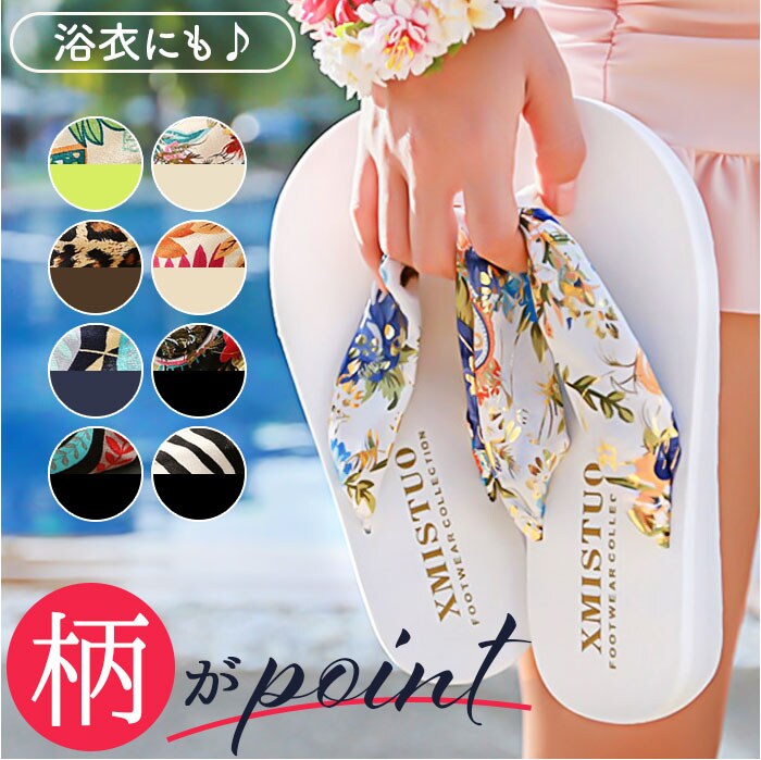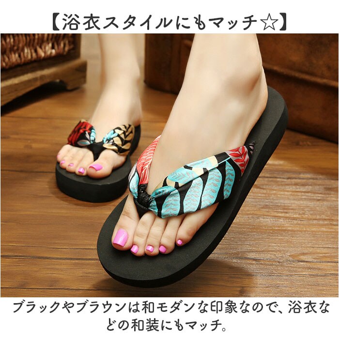| 商品説明 | 【華やかなプリントデザイン】鼻緒部分の植物や動物の柄プリントが華やか♪オシャレなビーチサンダルが発売♪【マルチに活躍】プールやビーチはもちろん、普段使いにも◎サンダル。ベランダ履きにもピッタリなアイテム。【厚底&フラット】厚底で安定感のあるフラットデザインでワンマイルのお出かけにも最適。【軽量&クッション素材】歩きやすさを追求した軽量設計。クッション素材で足当たりも柔らかく、長時間の歩行も楽々。【つっかけタイプで履きやすい】かかとなしのつっかけタイプなので、着脱がラクラク!普段使いだけでなくビーチや旅行にも◎【浴衣スタイルにもマッチ☆】ブラックやブラウンは和モダンな印象なので、浴衣などの和装にもマッチ。 |