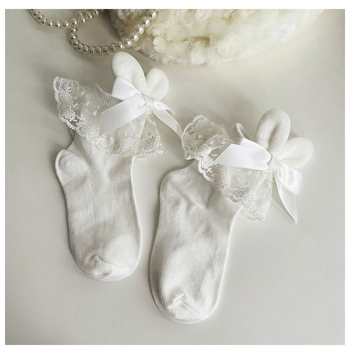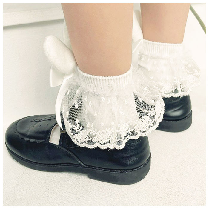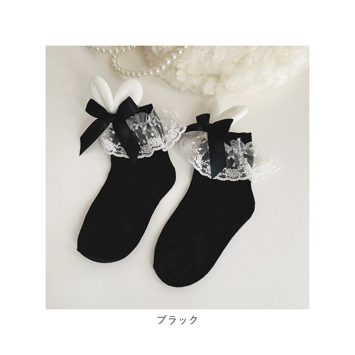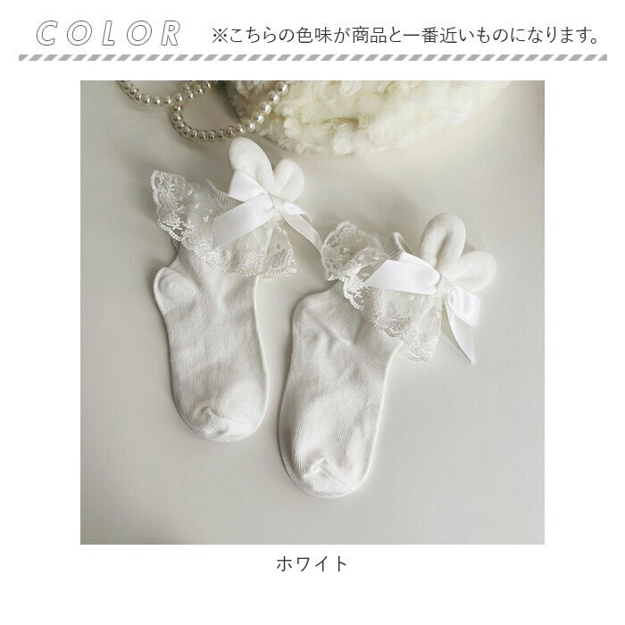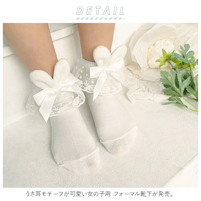 | 商品説明 | うさ耳モチーフが可愛い女の子用 フォーマル靴下が発売。オーソドックスなリボンとレース付きのフォーマル靴下にうさ耳モチーフを取り付けた特徴的な作り◎ガーリーめなコーデにも合う女の子らしいデザインの靴下。卒園卒業式はもちろん、普段使いもおススメ♪ |
