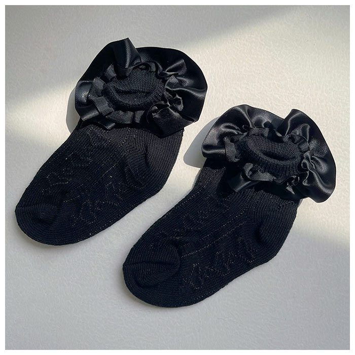 女の子 フォーマル 靴下 サテンレース gsocks4109【ブラック】【S(10-13cm)】