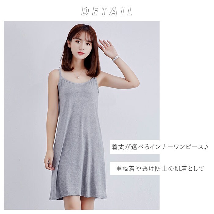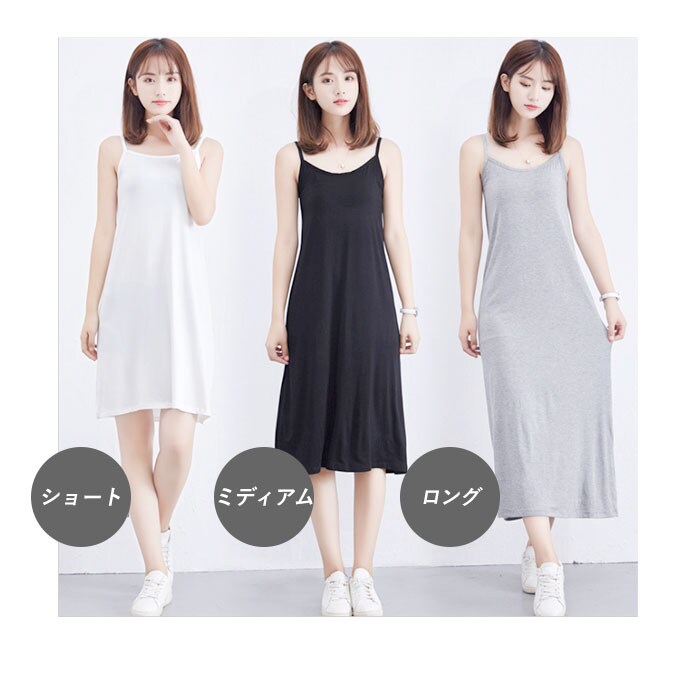 | 商品説明 | 重ね着コーデにぴったり♪着丈が選べるインナーワンピース♪着丈は「ショート」「ミディアム」「ロング」の3種類。吸汗性通気性に優れた、さらっと柔らかな肌触り♪帯電防止加工が施されているから、あのイヤな静電気が起きにくい♪どんなファッションにもマッチするシンプルなデザイン。1枚でストンと着こなすのはもちろん、重ね着コーデにもばっちり使える♪透け防止の肌着としても♪胸元の"あき"が詰まり過ぎていないから、重ね着したときにちょうどいい、絶妙なデコルテライン。オールシーズン使える、万能アイテム♪ |
