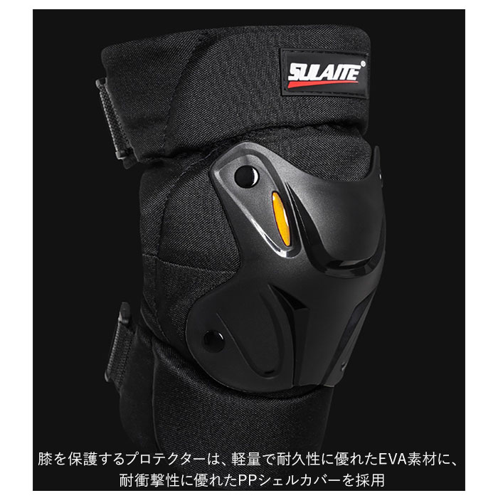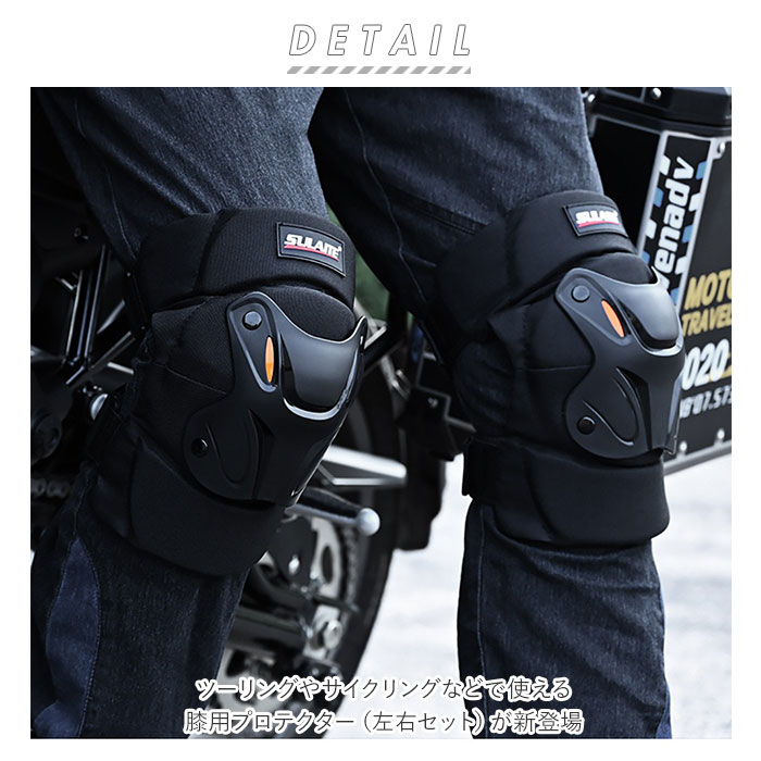 | 商品説明 | ツーリングやサイクリングなどで使える膝用プロテクター(左右セット)が新登場。膝を保護するプロテクターは、軽量で耐久性に優れたEVA素材に、耐衝撃性に優れたPPシェルカバーを採用。プロテクターには反射テープが施され夜間走行でも安心。膝上、膝下に触れる部分には厚手のスポンジが内蔵され、膝にフィットしやすいつくり。固定ベルトは面ファスナーで簡単装着。さらに伸縮性のあるラバーバンドで固定する二重構造。水洗い可能だから、自宅でのお手入れにも困らず汚れを落とせる。 |