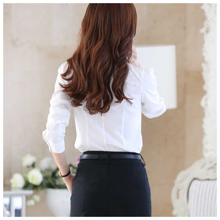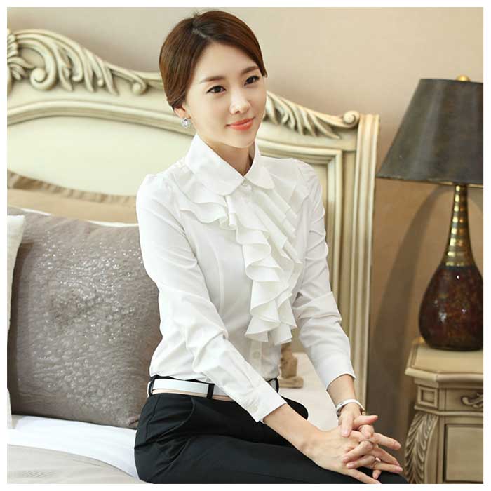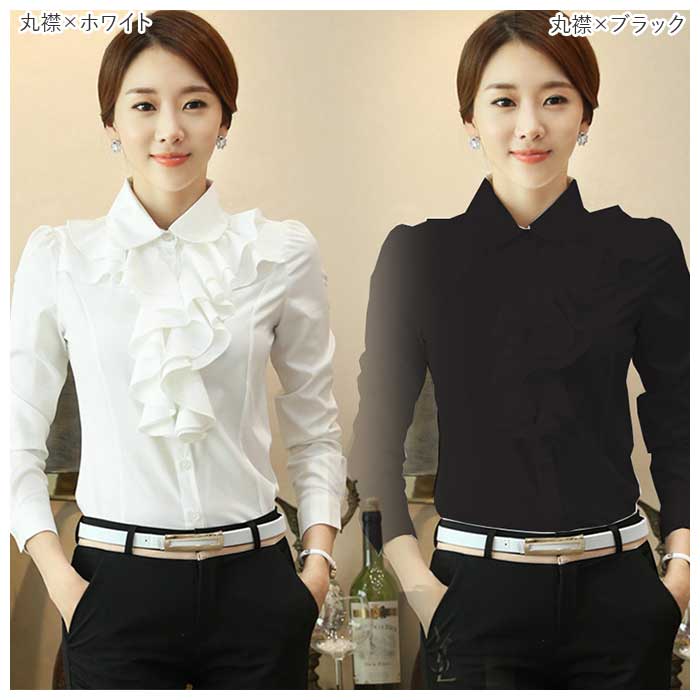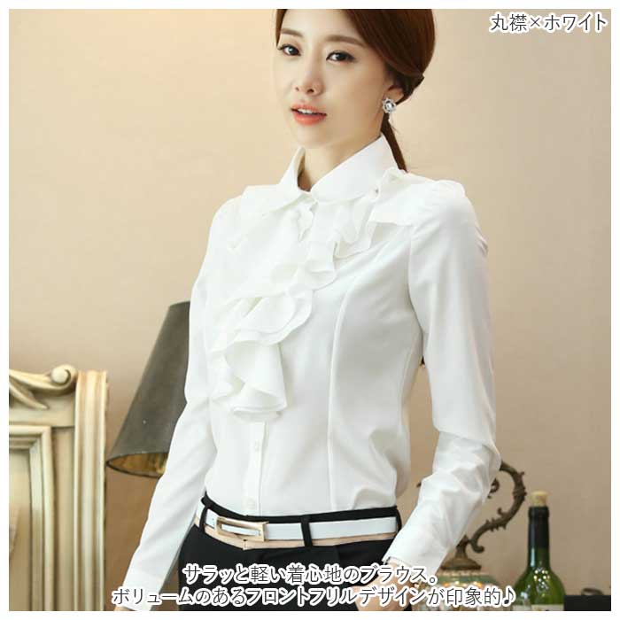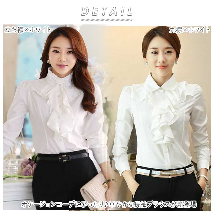 レディース 長袖 ブラウス フリル gtops4120【丸襟×ホワイト】【XL】