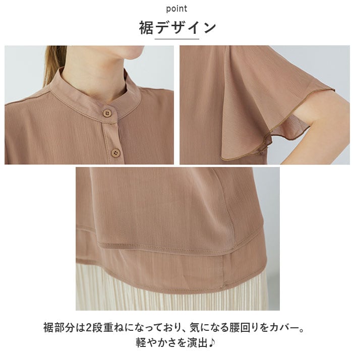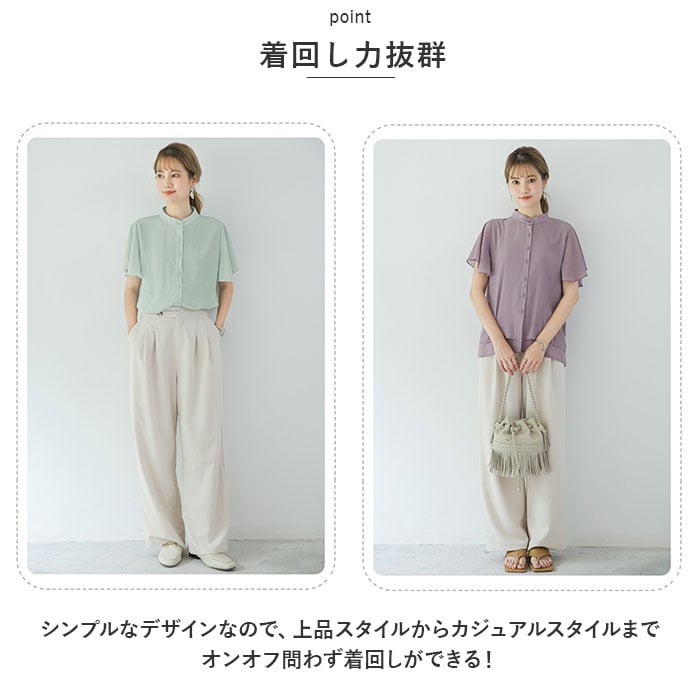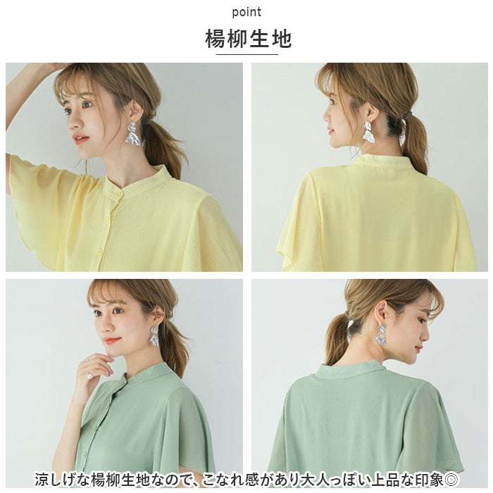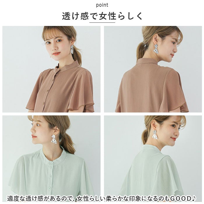 | 商品説明 | サラっと涼やか、ふんわり袖が可愛い♪「レディース ブラウス シャツ」が登場!【サラっと素材】サラっと素材で快適な着心地!見た目も涼やかなので暑い夏でもオシャレにキマる!【透け感で女性らしく】適度な透け感があるので、女性らしい柔らかな印象になるのもGOOD♪【フレアー袖】ふんわり可愛いフレアーデザインの袖。気になる二の腕をオシャレにカバー!【楊柳生地】涼しげな楊柳生地なので、こなれ感があり大人っぽい上品な印象◎【裾デザイン】裾部分は2段重ねになっており、気になる腰回りをカバー。軽やかさを演出♪【きちんと見え】ボタンと生地は同色になっているのでシックな雰囲気。きちんと見えする!【着回し力抜群】シンプルなデザインなので、上品スタイルからカジュアルスタイルまでオンオフ問わず着回しができる!【くすみカラー】大人可愛いくすみカラーが豊富☆どの色も可愛くて選ぶのも楽しい♪ |