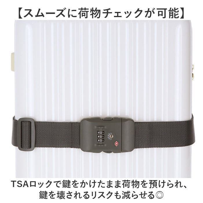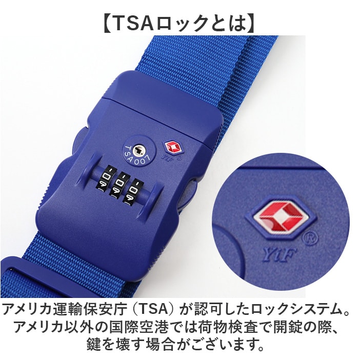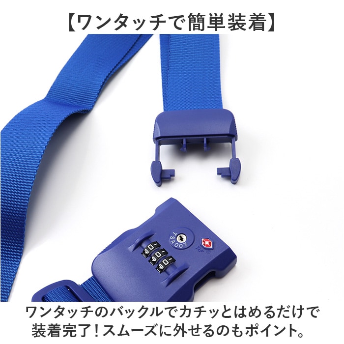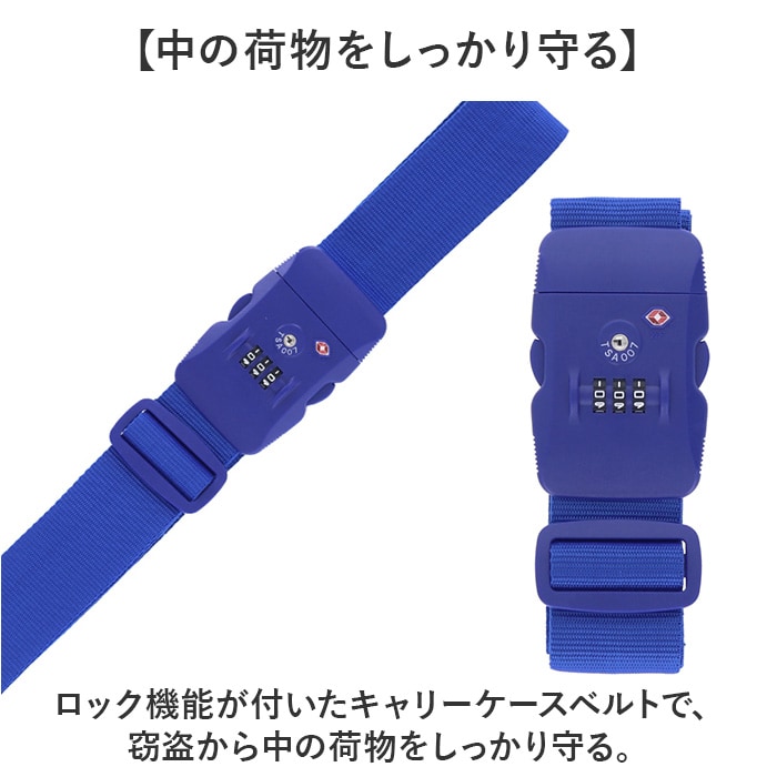| 商品説明 | 【海外旅行に便利なロック機能】TSAロック搭載!セキュリティもバッチリなキャリーケースベルトが新登場。【中の荷物をしっかり守る】ロック機能が付いたキャリーケースベルトで、窃盗から中の荷物をしっかり守る。【鍵を無くさないダイヤルロック】鍵が不要なダイヤルロック式。お好きな数字を3桁で設定可能。【スムーズに荷物チェックが可能】TSAロックで鍵をかけたまま荷物を預けられ、鍵を壊されるリスクも減らせる◎※(※)TSAロックとは・・・アメリカ運輸保安庁(TSA)が認可したロックシステム。アメリカ以外の国際空港では荷物検査で開錠の際、鍵を壊す場合がございます。【目印としても活躍】パッと目につくカラーで、キャリーケースの目印としても活躍できるアイテム。【ワンタッチで簡単装着】ワンタッチのバックルでカチッとはめるだけで装着完了!スムーズに外せるのもポイント。【1つで様々な大きさに対応】アジャスターで長さの調節ができ、1つで様々な大きさのキャリーケースに対応。※(※)全長約105cm~約188cm【ジッパーが壊れても安心】ベルトがキャリーケースを抑えてくれるので、不意の荷物の飛び出しを防いでくれる。【ユニセックスで使える】シンプルなワンカラーで使う人やシーンを選ばないでどなたでも使いやすい見た目。 |