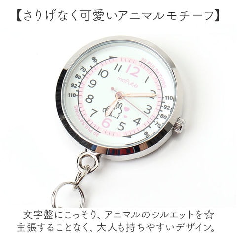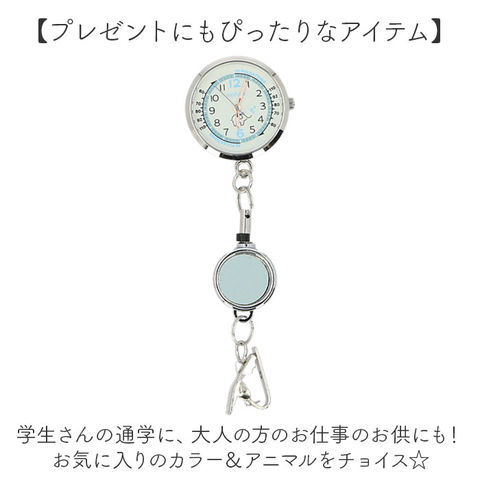 | 商品説明 | 【取り付け簡単!可愛く携帯♪】可愛らしいアクセントに。チャーム感覚で持ち歩ける「アニマル リール付きウォッチ」。【さりげなく可愛いアニマルモチーフ】文字盤にこっそり、アニマルのシルエットを☆主張することなく、大人も持ちやすいデザイン。【ミニフックで挟んで装着可能】上部のフックをバッグの金具やベルトループなどに挟むだけ。腕時計を身に付けられない方にも。【ぐ~んと伸びる便利なリール付き】約40cm伸縮するリールを装備。サッと伸ばして時間を確認できる、便利な仕様◎【暗い場所でも見やすい蓄光ダイヤル】暗い所で自然と発光する蓄光タイプ。屋外シーンや夜勤のお仕事でも重宝。【脈拍計測に役立つパルスメーター】医療現場で働く方にもおすすめの、パルスメーター付き。頭の中で計算する手間が省ける◎【安心の日本製ムーブメントを採用】ムーブメントは高い性能を誇る日本製。1秒ごとに時を刻むステップ秒針。【プレゼントにもぴったりなアイテム】学生さんの通学に、大人の方のお仕事のお供にも!お気に入りのカラー&アニマルをチョイス☆ |