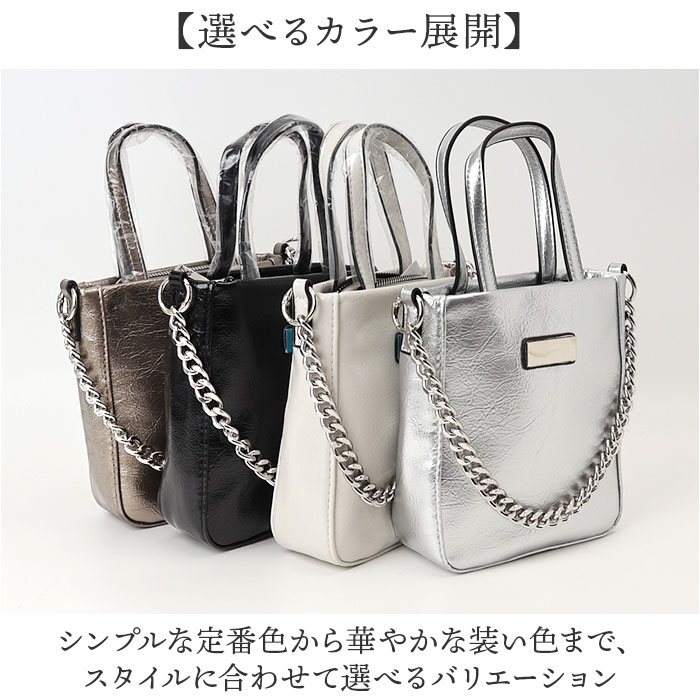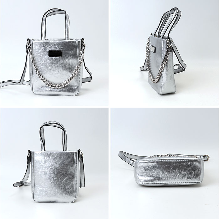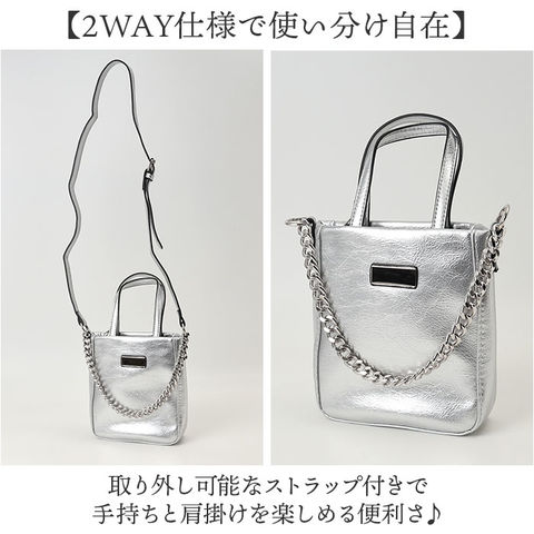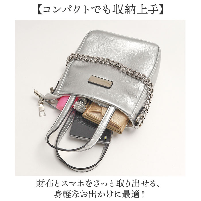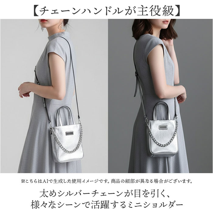| 商品説明 | 【チェーンハンドルが主役級】太めシルバーチェーンが目を引く、様々なシーンで活躍するミニショルダー【2WAY仕様で使い分け自在】取り外し可能なストラップ付きで手持ちと肩掛けを楽しめる便利さ♪【コンパクトでも収納上手】財布とスマホをさっと取り出せる、身軽なお出かけに最適!【シーンを選ばない万能デザイン】デイリーからパーティーまで幅広く対応できる洗練されたルックス〇【シンプルプレートが際立つ】装飾を削ぎ落とした無地プレートがモダンな品格を醸し出す仕上がり♪【選べるカラー展開】シンプルな定番色から華やかな装い色まで、スタイルに合わせて選べるバリエーション |