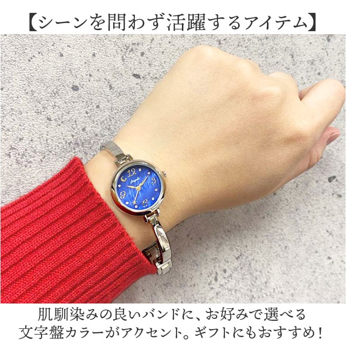 | 商品説明 | 【アクセサリー感覚で身につけOK】フェミニンな雰囲気漂う仕上がり♪「fragola スターハンズブレスウォッチ」。【月と星が煌めく洗練されたデザイン】細めのバンドに、角度に合わせて輝く白蝶貝の文字盤。手元を華奢に、上品に演出。【三つ折れバックルでワンタッチ着脱】付ける時はカチッと閉めて、外す時は両サイドをプッシュするだけ。付け外しがスムーズ。【手軽に使える日常生活防水タイプ】うれしい日常生活防水仕様。洗顔時・小雨などに一時的に濡れる程度なら大丈夫。(※1)水仕事中、プールやお風呂場などでのご使用は故障の原因となるため、お控えください。【デザイン性のある文字盤がおしゃれ】・4つの数字と、ストーンや月型で表現。文字盤ケース横のつまみで、簡単に時刻調節が可能。(※2)針の先は星型になっております。【安心の日本製ムーブメントを採用】ムーブメントは高い性能を誇る日本製。1秒ごとに時を刻むステップ秒針。【シーンを問わず活躍するアイテム】肌馴染みの良いバンドに、お好みで選べる文字盤カラーがアクセント。ギフトにもおすすめ! |