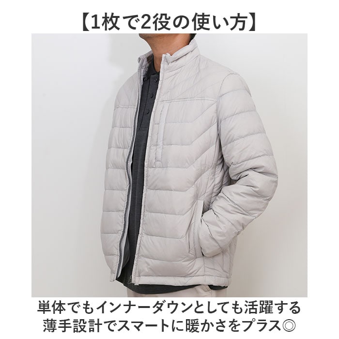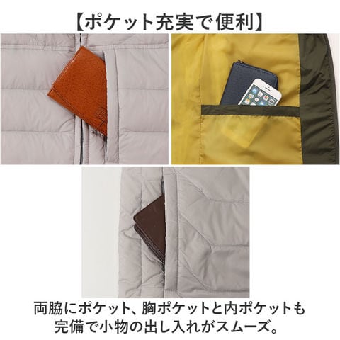 | 商品説明 | 【軽くて暖かい一枚】薄手で軽量、インナーにも使える万能ライトダウン。【1枚で2役の使い方】単体でもインナーダウンとしても活躍する薄手設計でスマートに暖かさをプラス◎【驚きの軽量ボディ】軽量設計だから通勤やお出かけなど、アクティブに動く日も疲れにくい。【撥水加工で雨にも強い】表地に撥水加工を施しているから、秋冬の不安定な天候にも対応できる実用性。【縦キルトですっきり】両脇が縦キルトになっているから、すっきりとしたシルエットで動きやすさも抜群!【ポケット充実で便利】両脇にポケット、胸ポケットと内ポケットも完備で小物の出し入れがスムーズ。【裏地に遊び心を】明るいカラーの裏地がおしゃれなアクセント♪ |