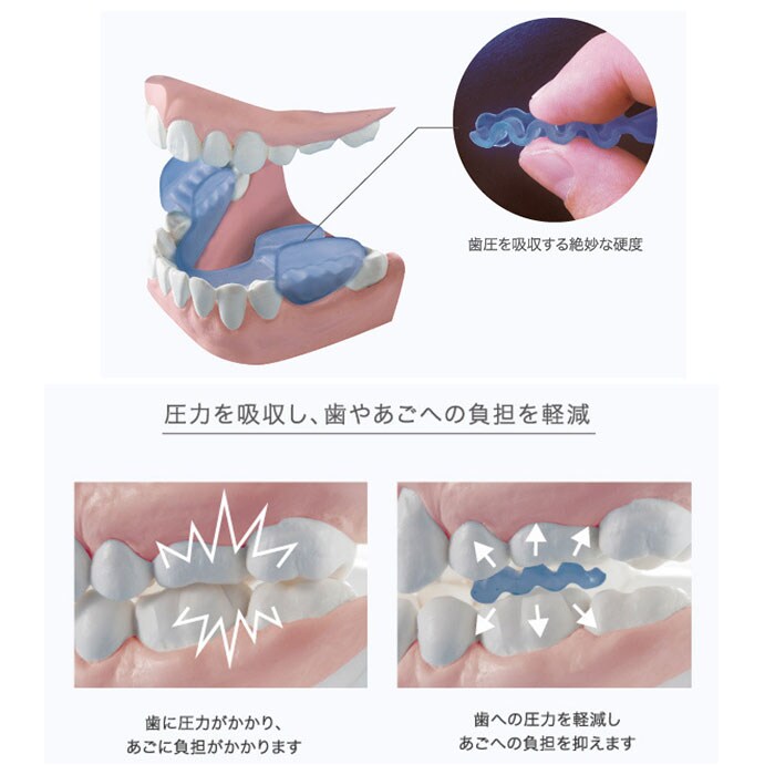 | 商品説明 | 人気の「歯ぎしりピタリ」に、男性も安心の「ストロングタイプ」が登場!従来品に比べて分子の結びつきが強くなり、約3倍切れにくくなった。歯ぎしり、食いしばり、騒音、歯の損傷対策に。寝ている間に使えるマウスピース。歯ぎしりによる首や肩の衝撃をやわらげ、翌朝の目覚めもすっきり。歯科医考案の歯圧吸収構造で、圧力を吸収し、あごや首への負担を軽減。歯型形成もいらない。歯圧を吸収する絶妙な硬度。マウスピースで歯ぎしりを和らげ、家族や周りの人の安眠にも!奥歯に合わせて装着するだけ。中性洗剤と水またはお湯でさっと洗ってお手入れも簡単。 |