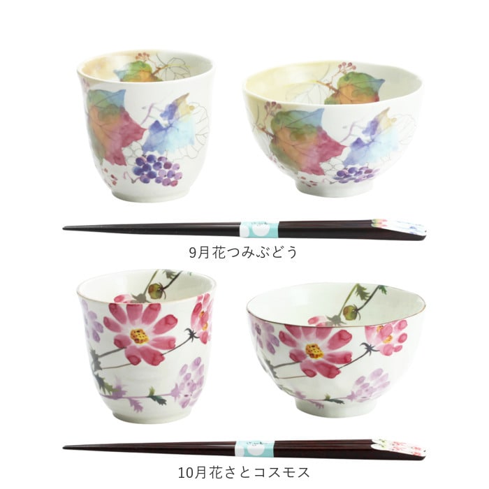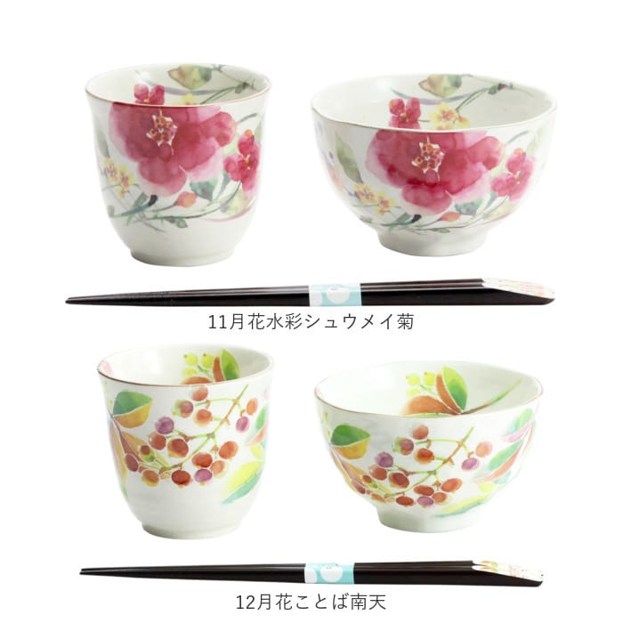 | 商品名 | 花ものがたり12ヶ月 天宝箸付飯碗湯呑セット |