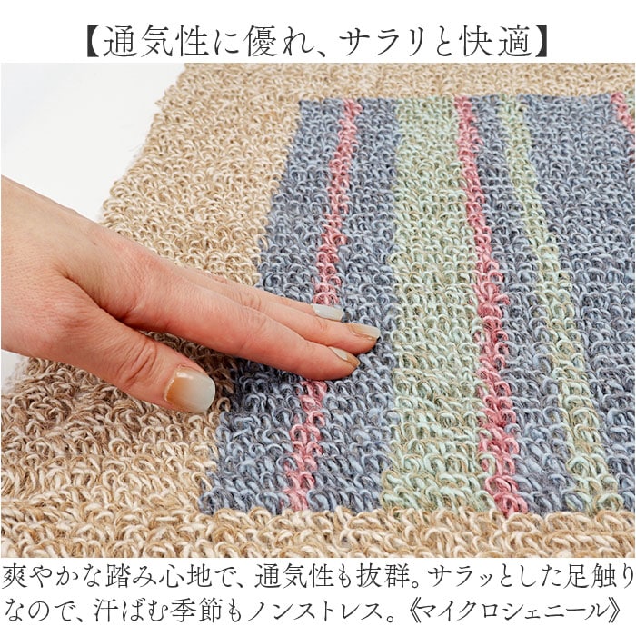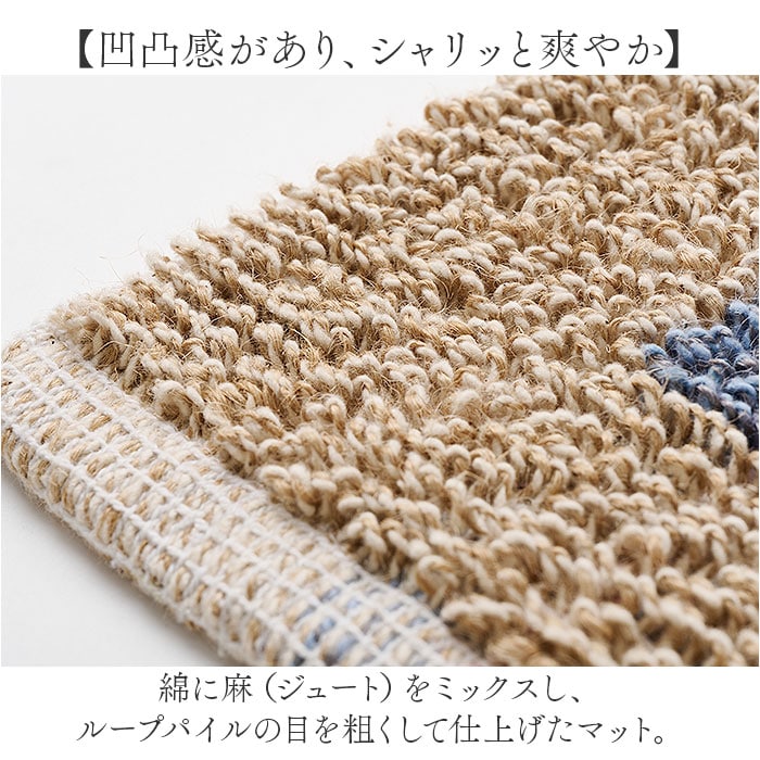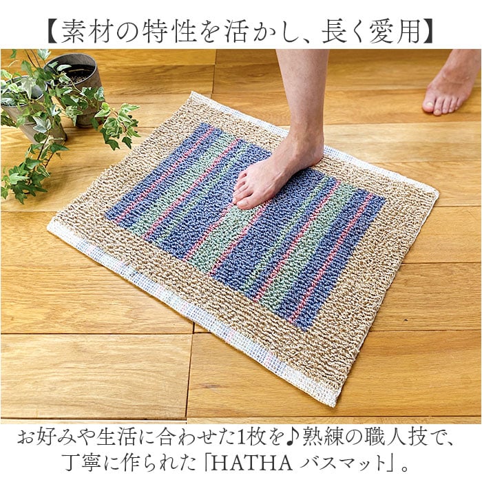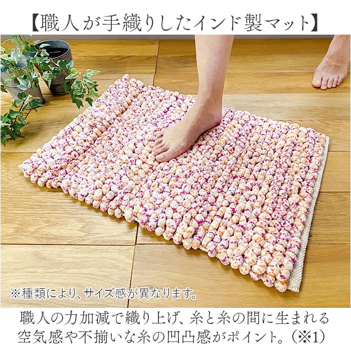 | 商品説明 | 【素材の特性を活かし、長く愛用】お好みや生活に合わせた1枚を♪熟練の職人技で、丁寧に作られた「HATHA バスマット」。【職人が手織りしたインド製マット】職人の力加減で織り上げ、糸と糸の間に生まれる空気感や不揃いな糸の凹凸感がポイント。(※1)種類により、サイズ感が異なります。【丸洗いできてお手入れラクラク】ネットに入れて、洗濯機洗い可能。気軽に使いやすく、いつも清潔をキープ。(※2)洗濯機の弱モードをご使用ください。《コットンジュート》【凹凸感があり、シャリッと爽やか】綿に麻(ジュート)をミックスし、ループパイルの目を粗くして仕上げたマット。【通気性に優れ、サラリと快適】爽やかな踏み心地で、通気性も抜群。サラッとした足触りなので、汗ばむ季節もノンストレス。《マイクロシェニール》【ふかふか心地よい新感触の仕上がり】マイクロファイバーのシェニール糸。密度の詰まった毛足に、大きなループパイルのポコポコ感♪【足元を優しく包み込んでくれる】お風呂上がりの足元をふんわり包むような、柔らかな質感がやみつきに! |