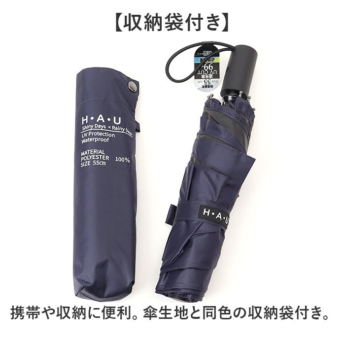 HAU PUムジ自動開閉傘 55cm【ネイビー】