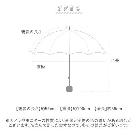 | サイズ | [親骨の長さ]約55cm/[直径]約100cm/[全長]約56cm [収納時の長さ]約29cm [収納時の幅]約7cm ※サイズは当店計測の実寸サイズです。実際の商品ならびにメーカー表記サイズとは多少の誤差が生じる場合がございます。あらかじめご了承ください。 |